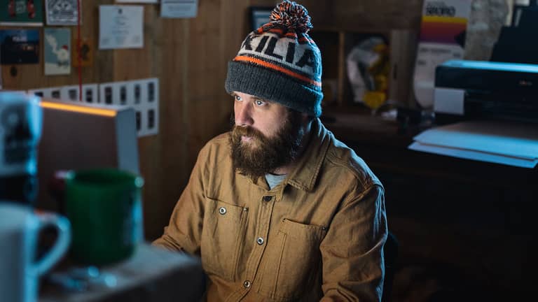 Flying down a hill on his bike or running in the woods with his dog Lukka provides the inspiration, a love of typography and vintage styles supplies the means.
