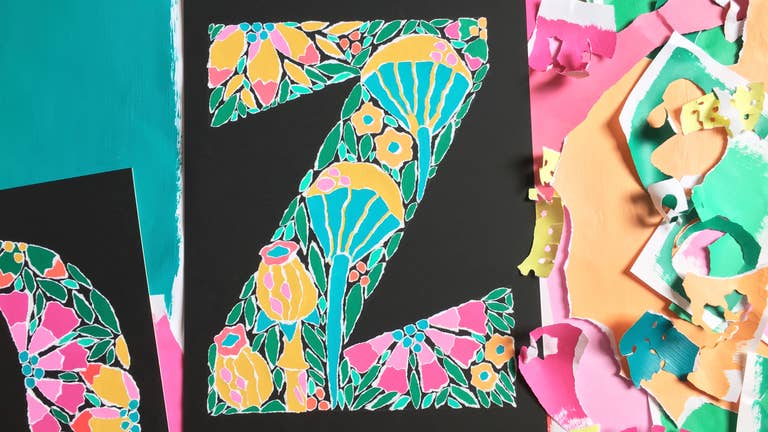 My artwork usually begins by painting lots of sheets of paper in various colours. The final images are then produced by ripping up this paper and creating collaged pieces. The act of ripping rather than cutting always produces unexpected results, meaning that each image is unique and I always choose dark backgrounds to highlight the ripped paper edge.