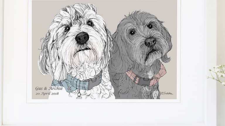 Personalised hand drawn portraits of your home, pets, family and friends.