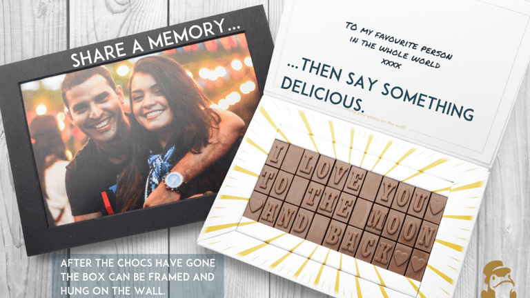 We know that the best gifts are made by you, so with Morse Toad you can customise the chocolate, and the card with a photo and a message.