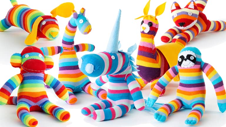 Each kit contains everything you need to create a totally unique and creative creature using socks, stuffing, some basic sewing and the instructions provided.