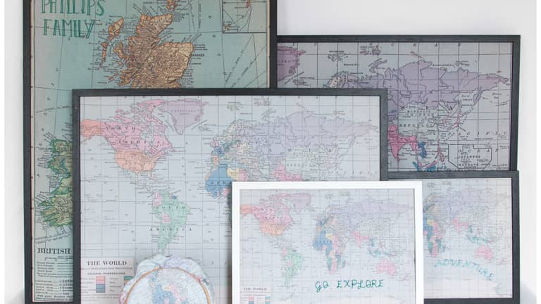 The business initially started as a homemade present idea for her boyfriend, she wanted a map to record their travels with a noticeboard backing to keep all their mementos but couldn't find anything with vibrant colours and a vintage feel so she set about making it herself, which led to requests from friends and it grew from there.