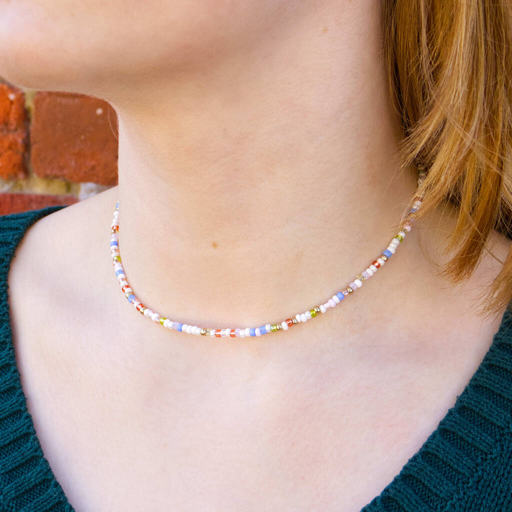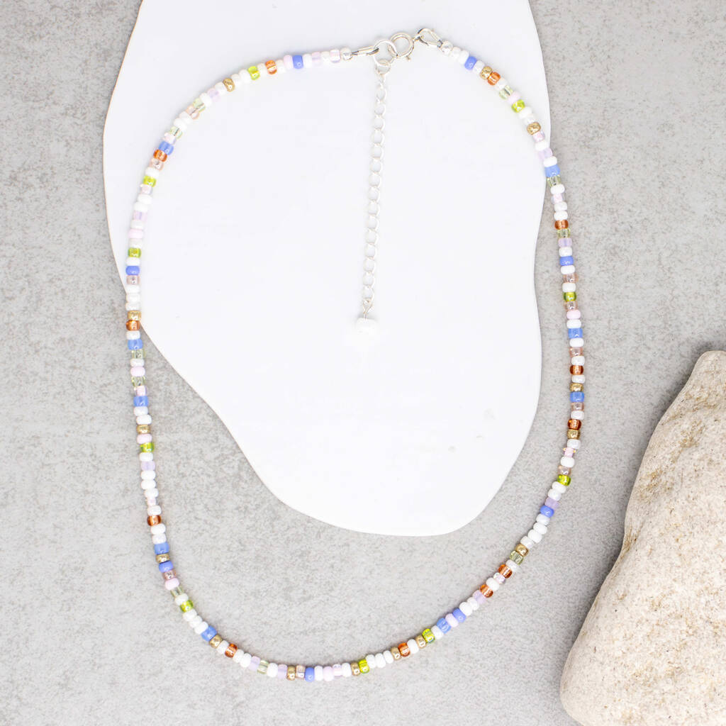 Blossom Pastel, White And Gold Seed Bead Necklace