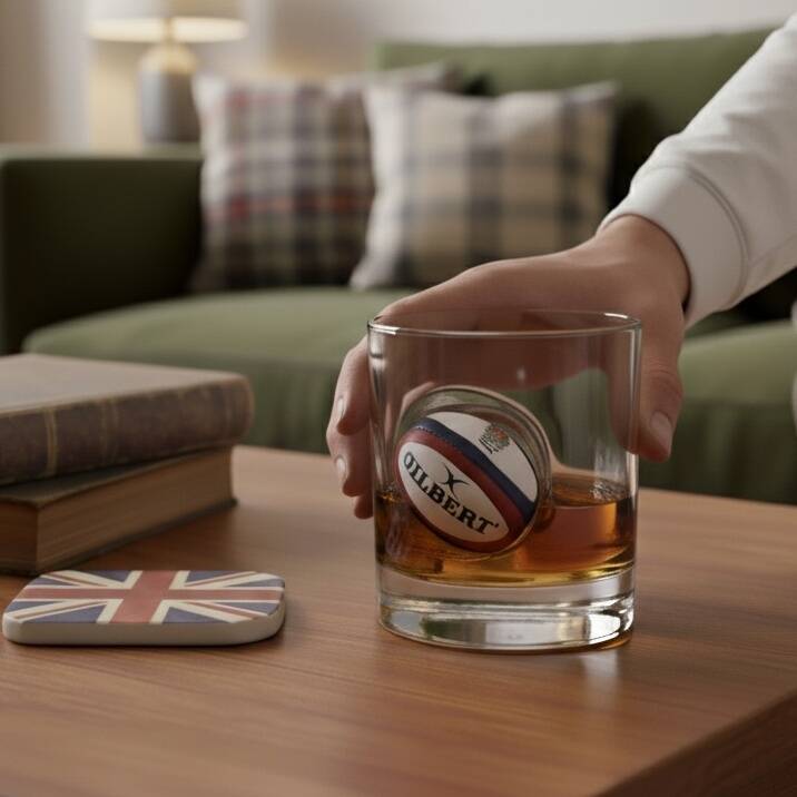 Featuring a souvenir ‘stress style’ rugby ball from Gilbert Sports (that can be kept neutral, or feature the colours and symbols of several rugby-playing nations) is pressed into a 12oz whisky tumbler. As this is a manual process, there will be slight imperfections and unique variations, and this adds to the singular nature of the gift. You can then add a personalised message, name (or names of your rugby-loving friends or family members) or even a logo.