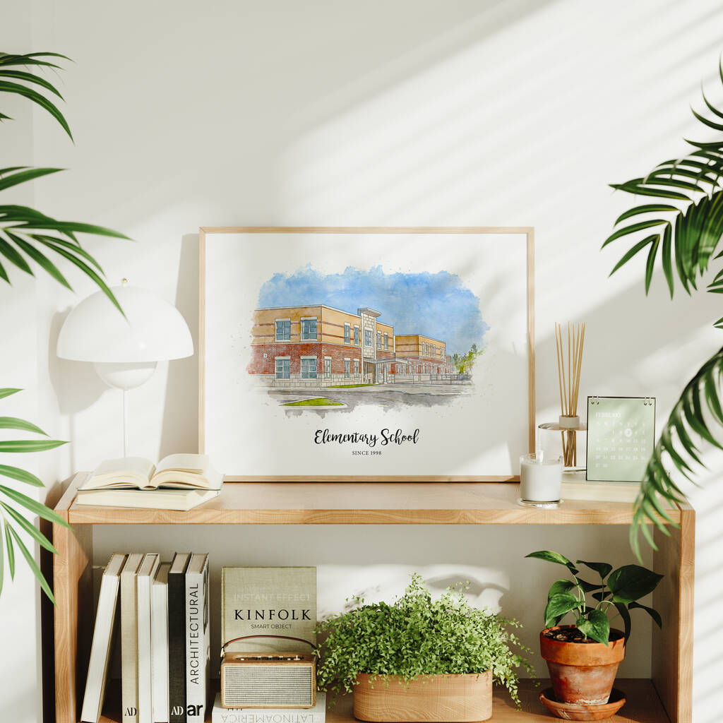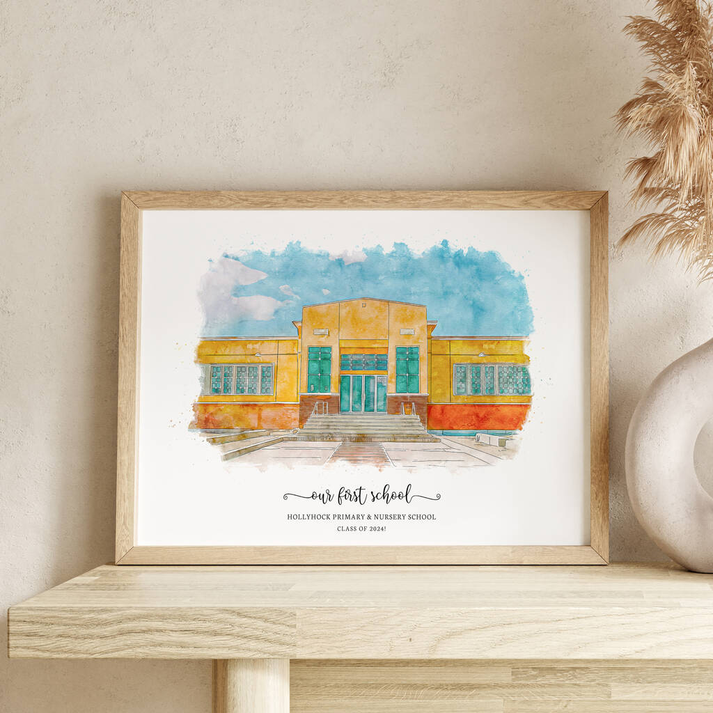 A beautiful personalised watercolour portrait of your school – a meaningful keepsake and a thoughtful gift for students, teachers, or alumni.