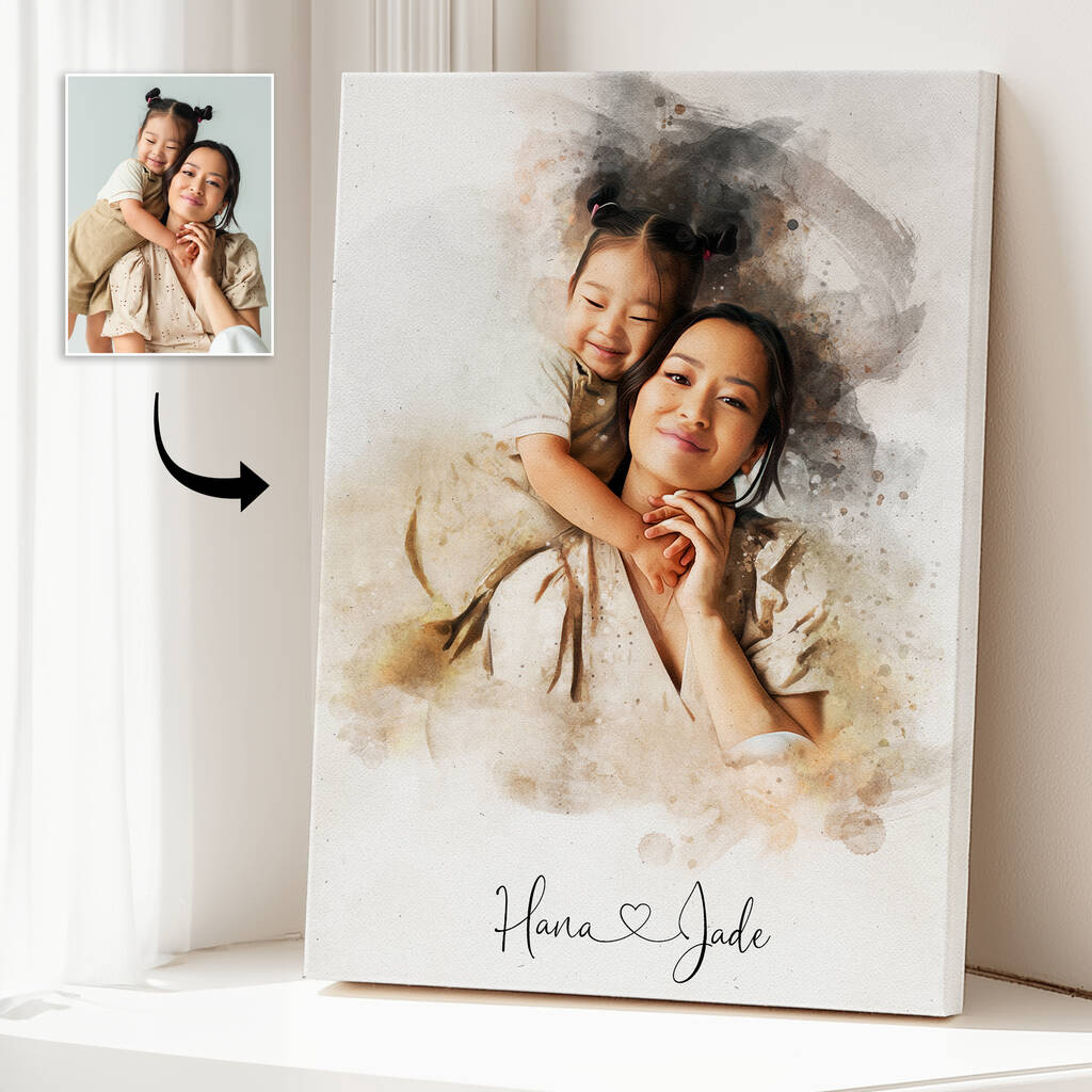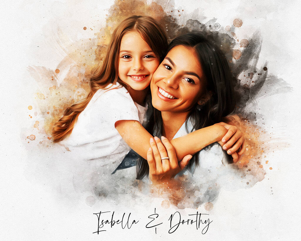 Using your favorite photo of your mom, our skilled artists will create a timeless watercolor portrait that is both elegant and unique. You can even add a personal message or quote, turning it into a keepsake she will cherish forever.