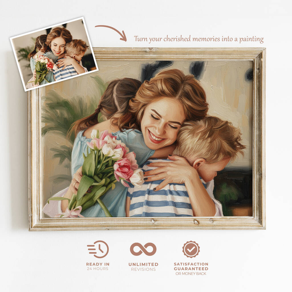 A custom portrait painting from your photo that transforms cherished memories into meaningful art, capturing love, warmth, and connection in a heartfelt, personal gift.