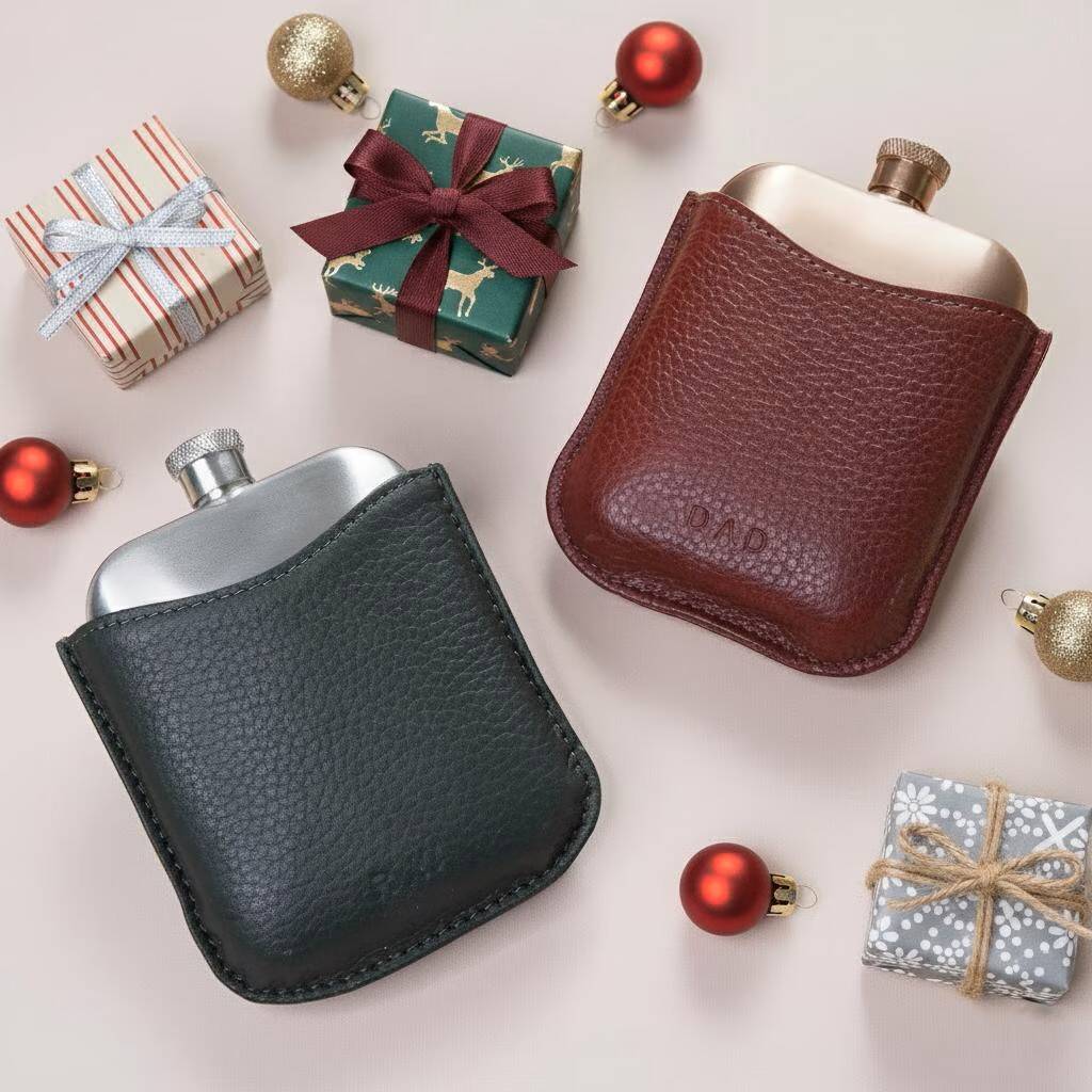Copper Hip Flask With Luxury Leather Sleeve Christmas Gift For Him