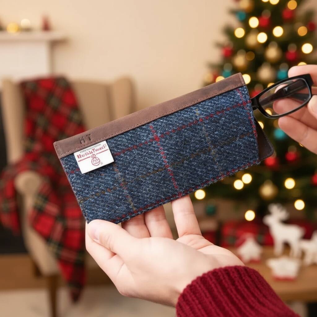Personalised Harris Tweed Glasses Case Christmas Gift For Him