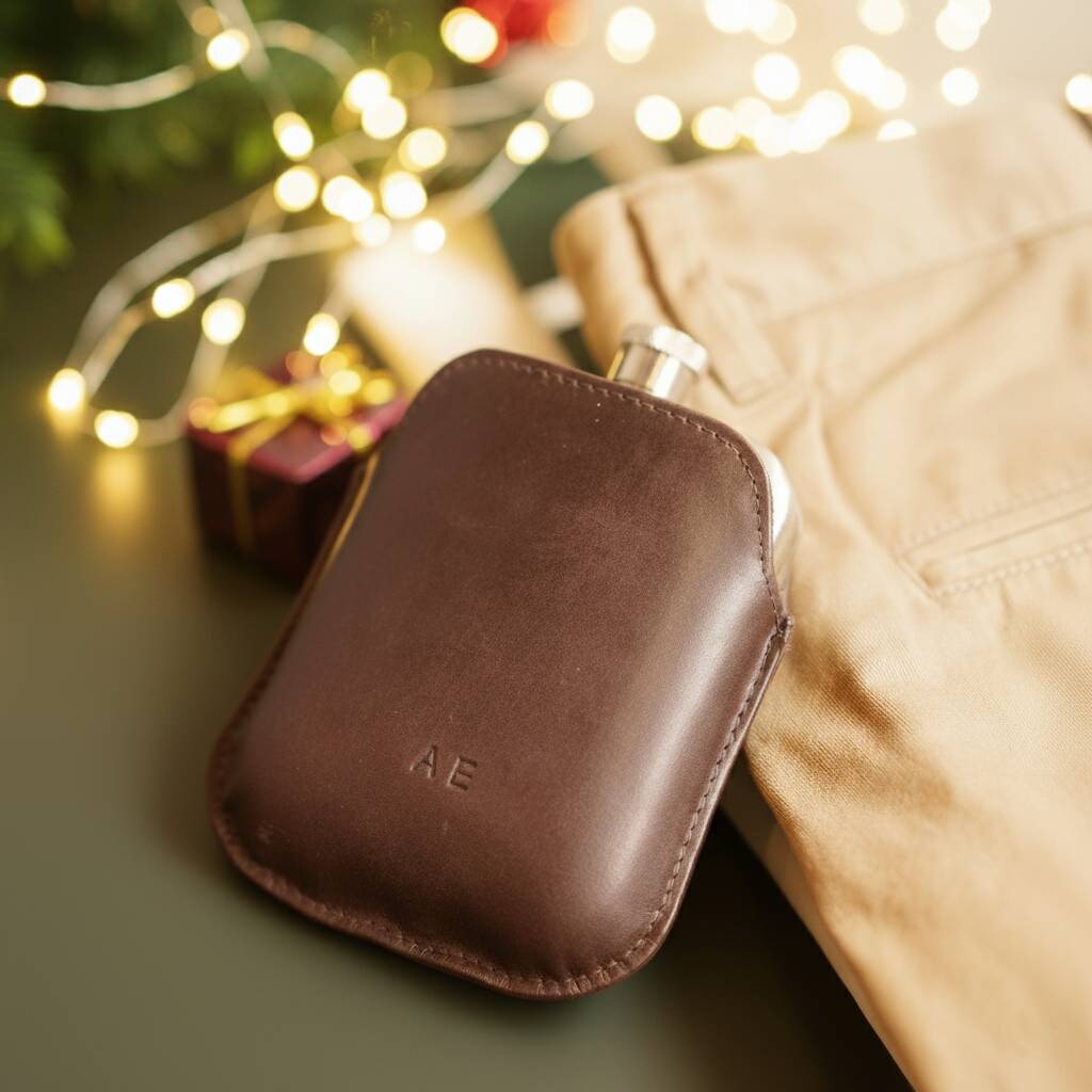 Steel Hip Flask With Personalised Leather Sleeve Christmas Gift For Him Or Her