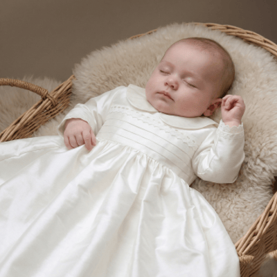 With our stunning range of Christening gowns, special occasion dresses, rompers and accessories we can help dress your baby for their special day. We love to use sumptuous silks and gorgeous laces, sourced from all over the world to make the most spectacular range of baby's special occasion wear you’ll find.