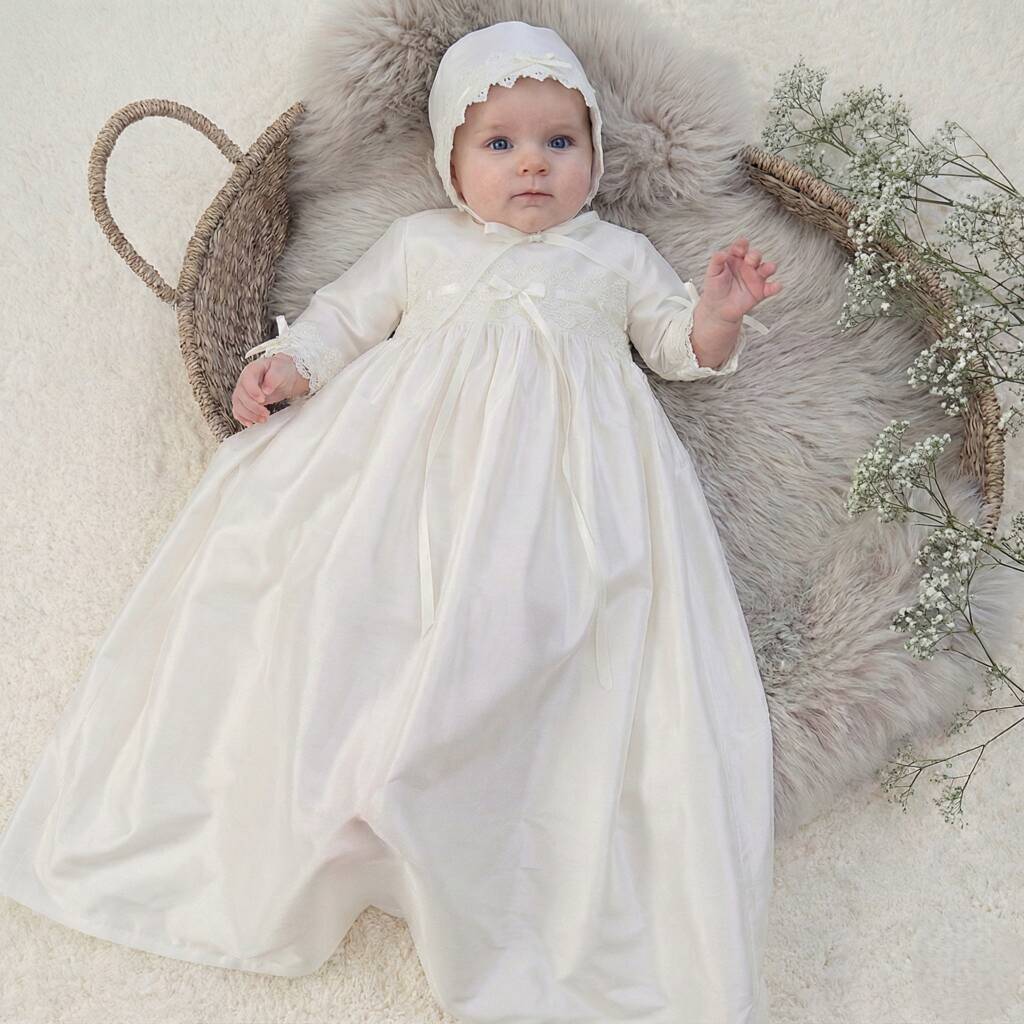 Silk Christening Gown ¾ Sleeve | Kara