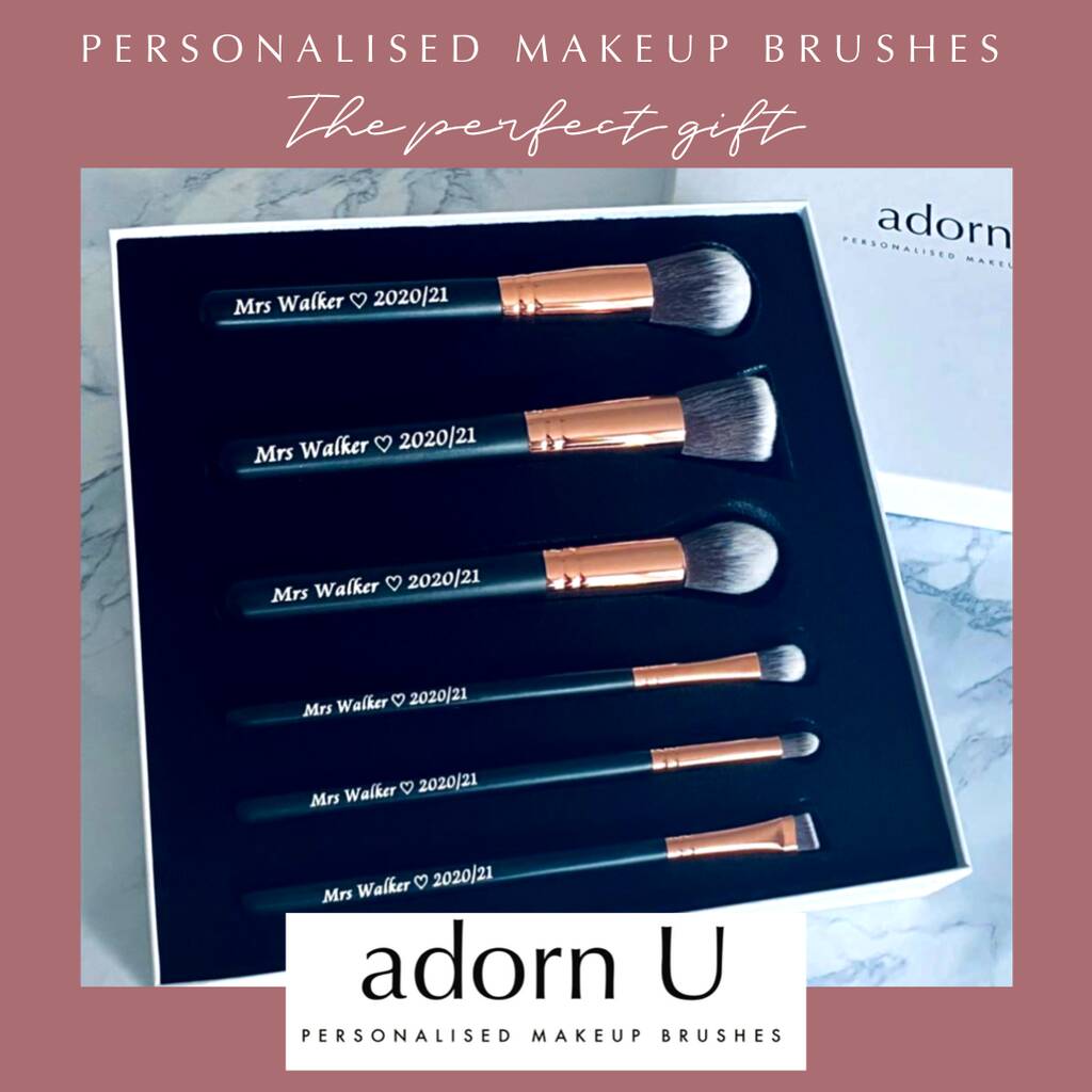 adorn U personalised makeup brushes are perfect as a Christmas gift. Suitable for wooden or copper wedding anniversary. For Birthdays, Weddings or any other occasion. Makes a great gift for any makeup lover. Personalised with a name, date or message of Your choice making them a unique and personal gift. Unusual gift for Christmas, Mother's Day, International Womens Day, new Mum, weddings and more. The brushes are Professional grade, the highest quality, easy to clean and can be used with all types of makeup. Recommended and used by British celebrities and Makeup Artists, BBC, ITV, NETFLIX, Sky TV.