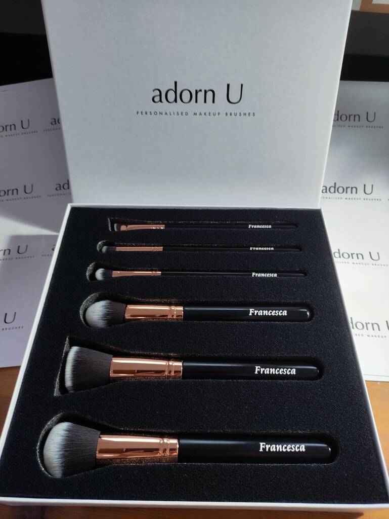 Engraved with a name or message of your choice, giving that extra personal touch that makes gifting even more special. Laser engraved and then colour infilled, waxed and buffed by hand, adorn U brushes are not printed or finished on a machine. Thay make an unique and meaningful gift to any makeup lover. The brushes are premium quality, used by professional makeup artists, hypoallergenic with no nickel or alluminium. The bristles are super soft and vegan - no animal hair. The brushes are asy to clean and they are suitable for any type of makeup including mineral makeup. Each brush is engraved with a name or message of your choice and they come in an elegant box with the brush menu - that explain how to use each brush for makeup beginners.