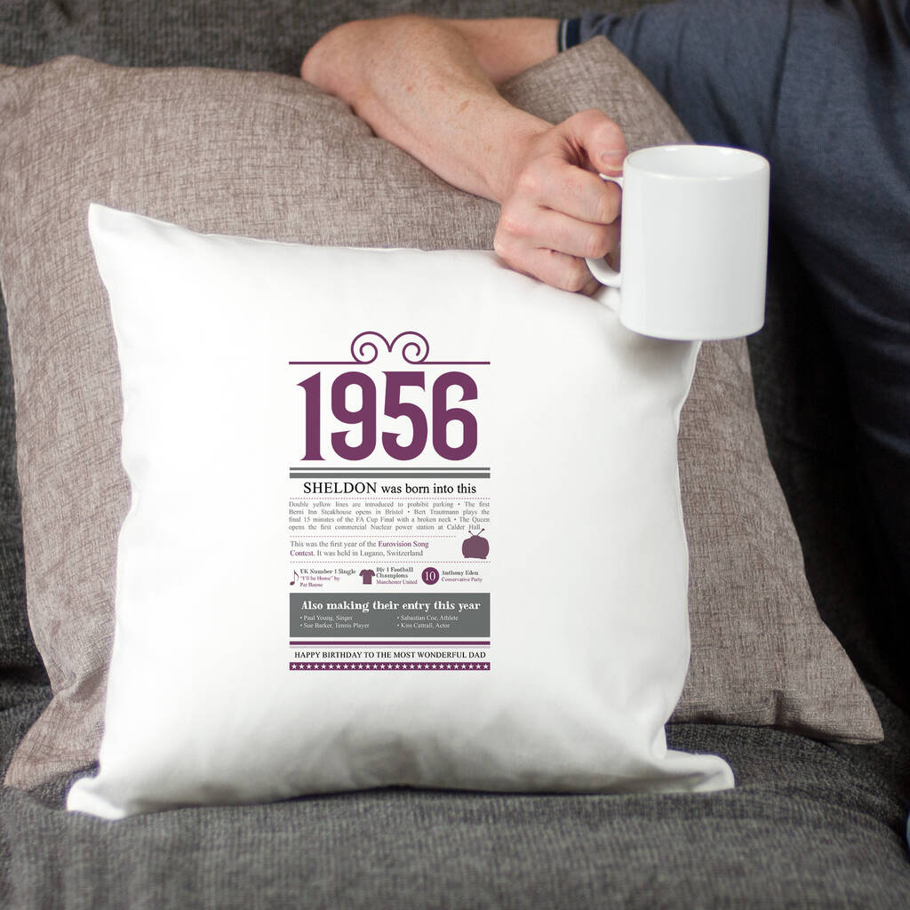 Personalised 70th Birthday Gift 1956 Cushion