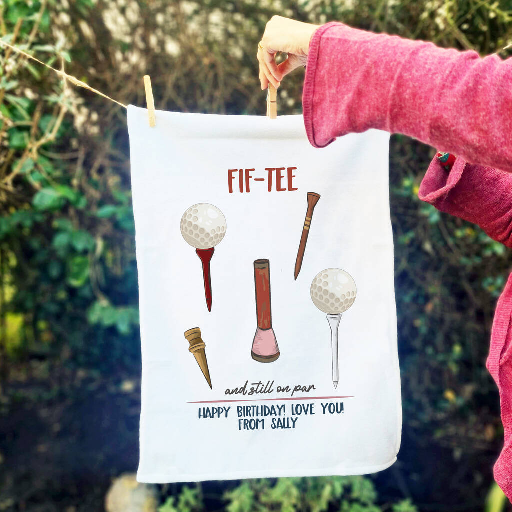 Personalised Fif Tee Tea Towel 50th Birthday Gift For Golfers