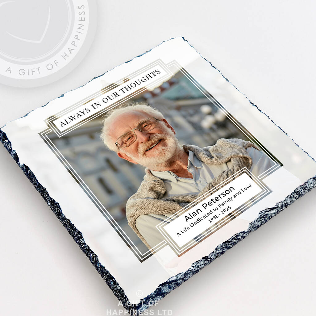 Always In Our Thoughts Personalised Memorial Photo Slate, 1 of 6