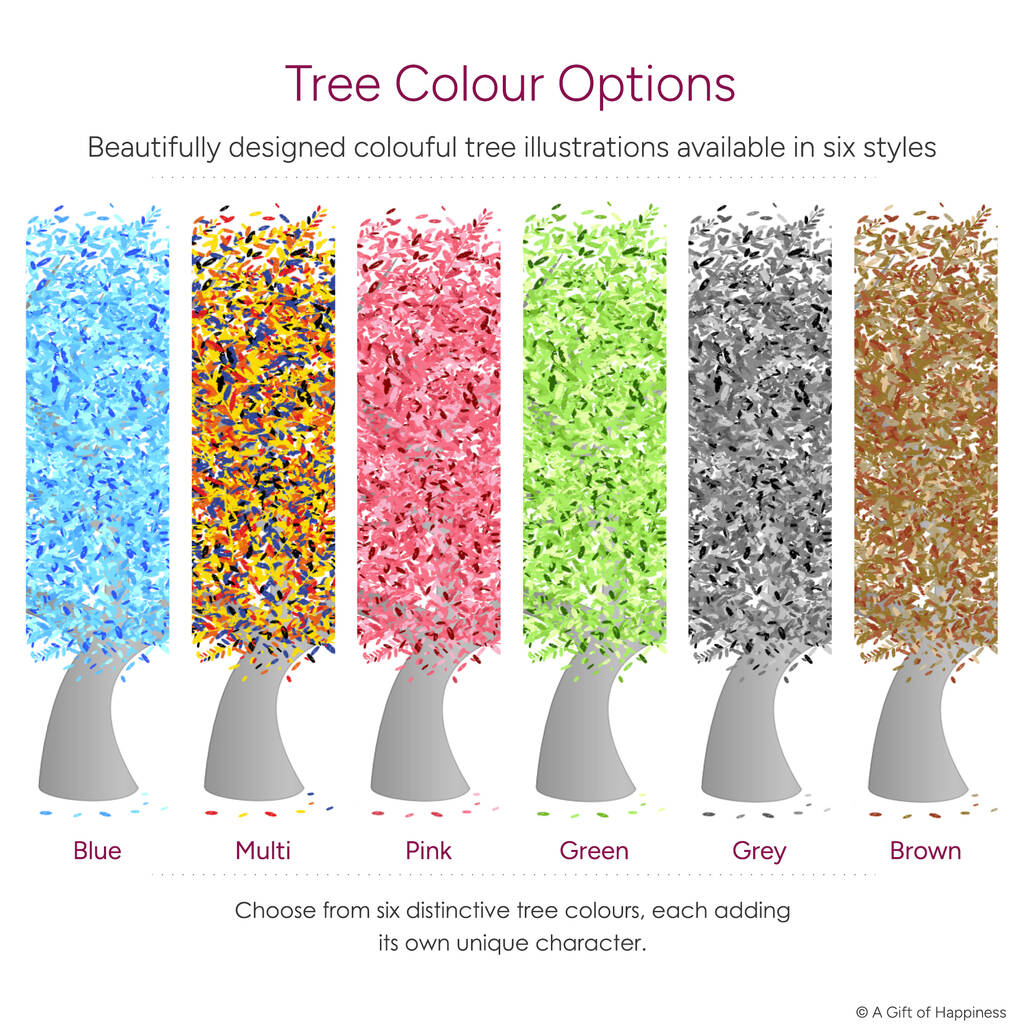 •• TREE ILLUSTRATION •• Exclusively illustrated by A Gift of Happiness, this elegant family tree design is available in six colours: Grey, Blue, Green, Brown, Pink, and Multi-Coloured.