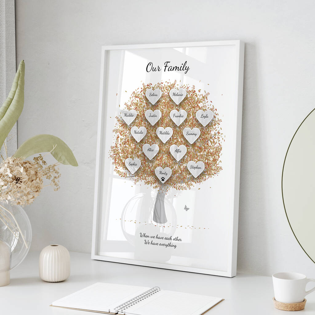 Every Personalised Family Tree Print is designed and printed with care and precision in our Yorkshire studio. More than decoration, it is a meaningful keepsake created to honour the love and connection shared between family members. This personalised wall art makes a heartfelt gift for parents, family, or friends and will be treasured for years to come.