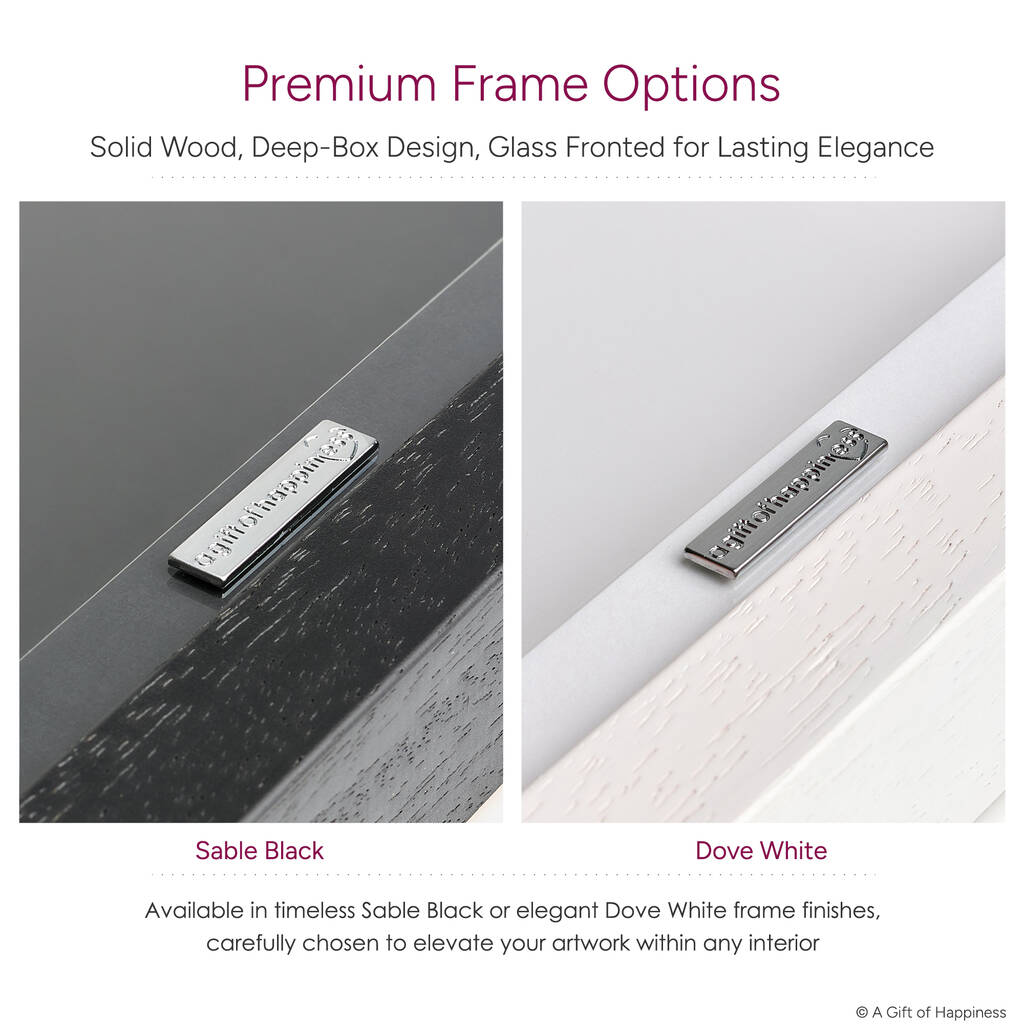 •• SOLID WOOD FRAME •• Each frame is made from textured solid wood, chosen for its strength and natural character. The deep box profile adds presence, while the grain ensures no two frames are exactly alike. Available in Dove White or Sable Black, both finishes are timeless and versatile. As wood is traditionally tied to the 5th wedding anniversary, this frame also serves as a meaningful wooden 5th anniversary gift.