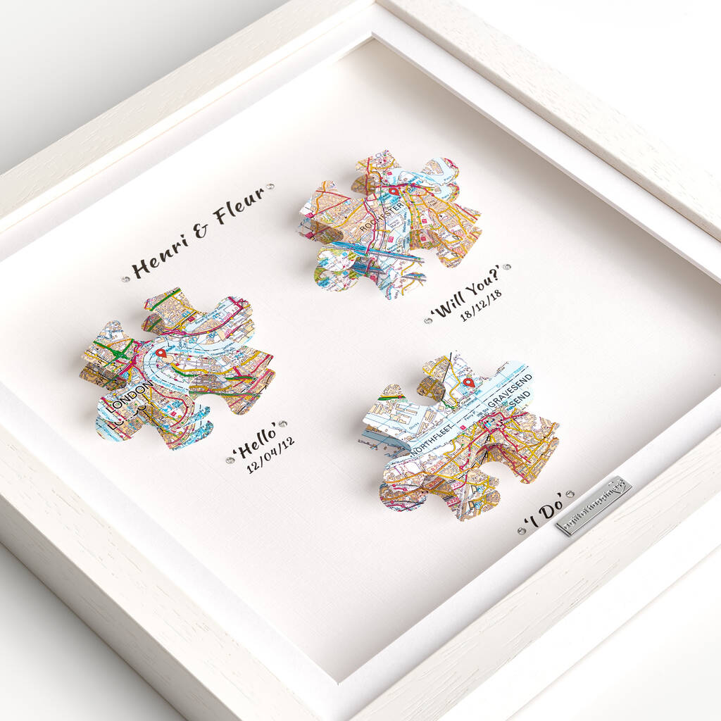 • Each map is carefully cut and layered with a second identical piece to create at 3D effect, producing a distinctive three-dimensional finish.