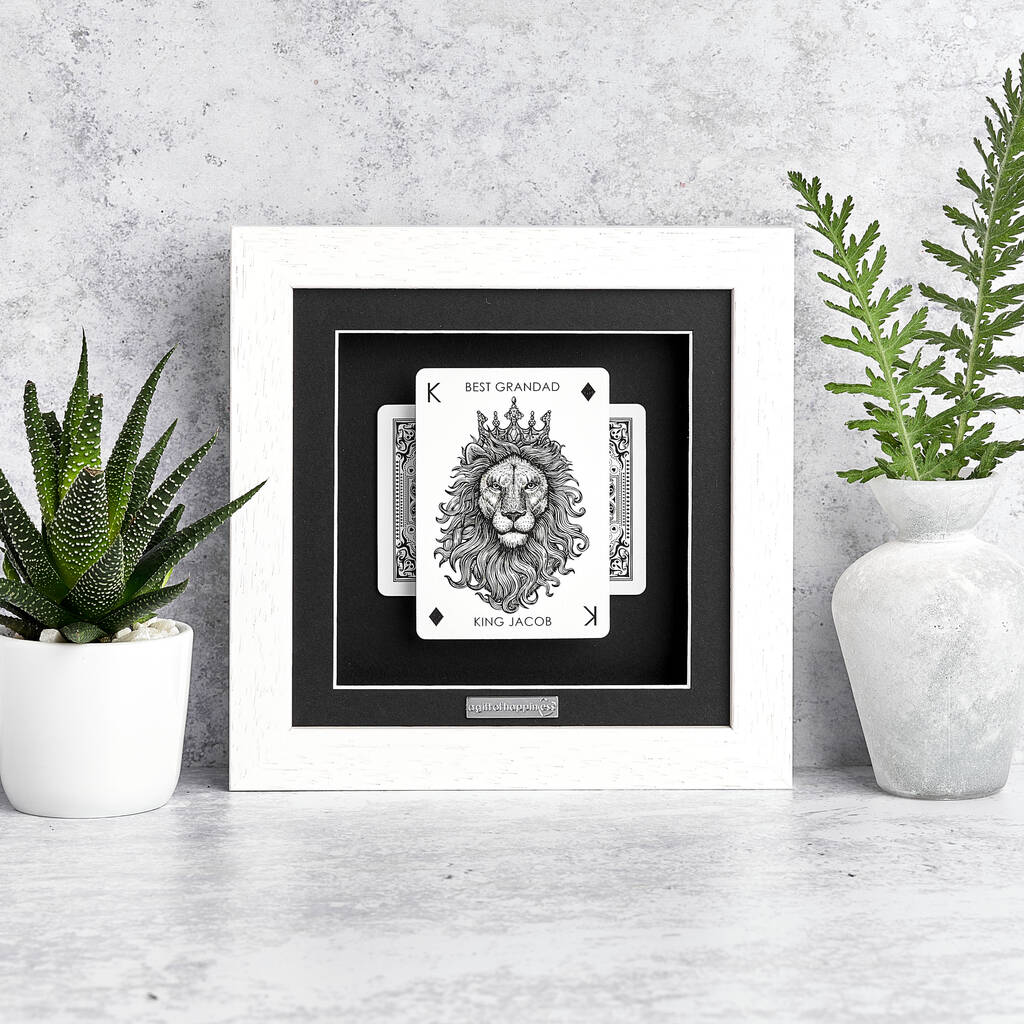 •• EXCLUSIVE ARTWORK •• The Royal Lion portrait and card back design were created exclusively for A Gift of Happiness, ensuring this artwork cannot be found anywhere else. Strong, noble and full of character, the Lion symbolises protection, leadership, and pride, qualities that embody a grandfather’s role within the family.