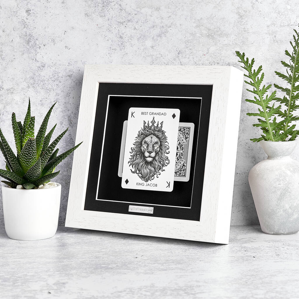 The deep-box construction allows the three-dimensional playing card to stand out proudly behind the glass front, showcasing every personalised detail. Each frame can be wall-mounted as a focal point or displayed freestanding, giving flexibility for different interiors.