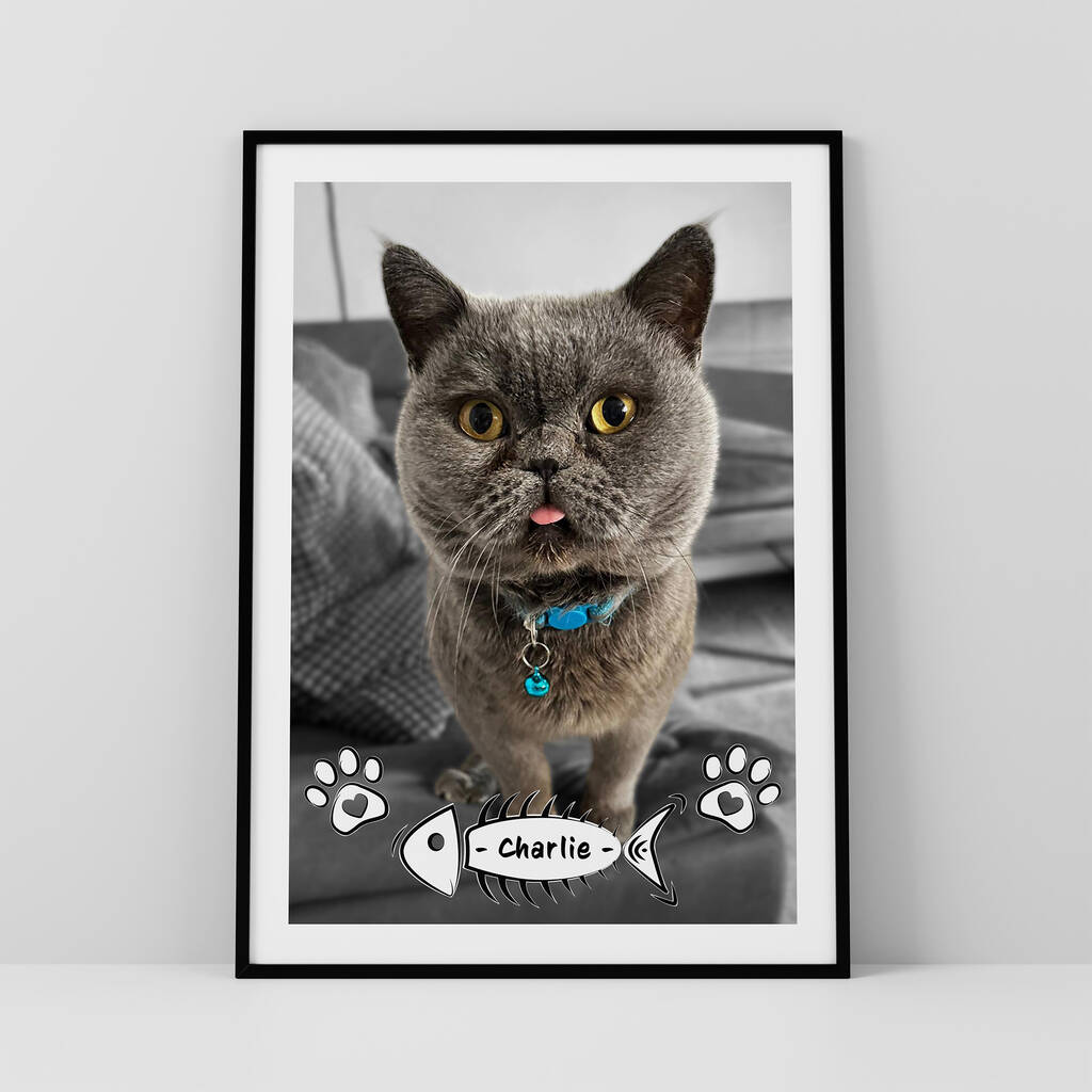 Personalised Cat Photo Print Wall Art Gift For Cat Mums And Dads
