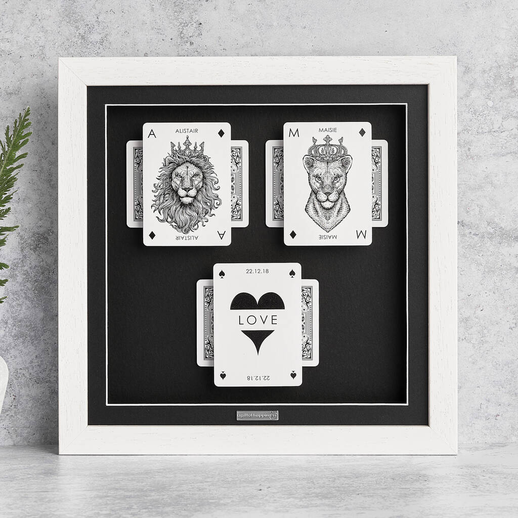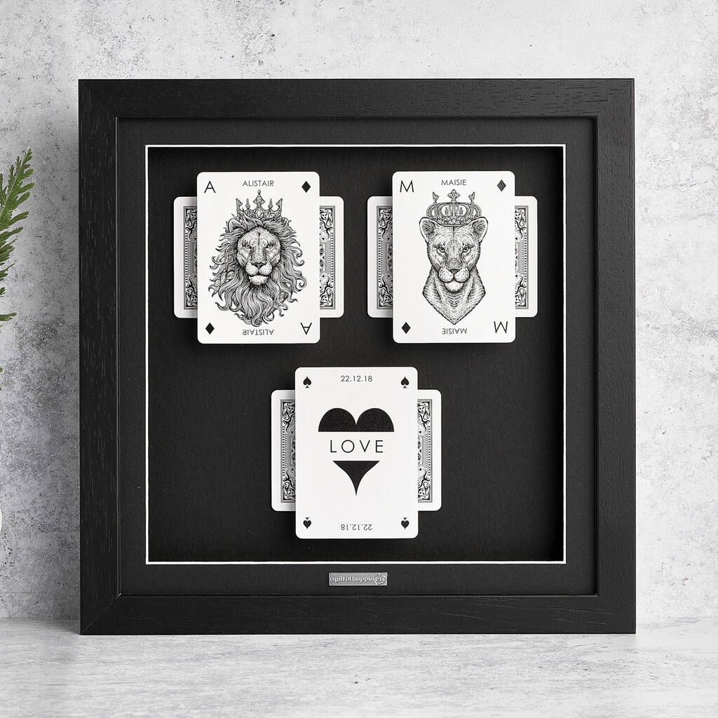 Personalised Couples Gift Royal Lion Playing Cards Gift Frame