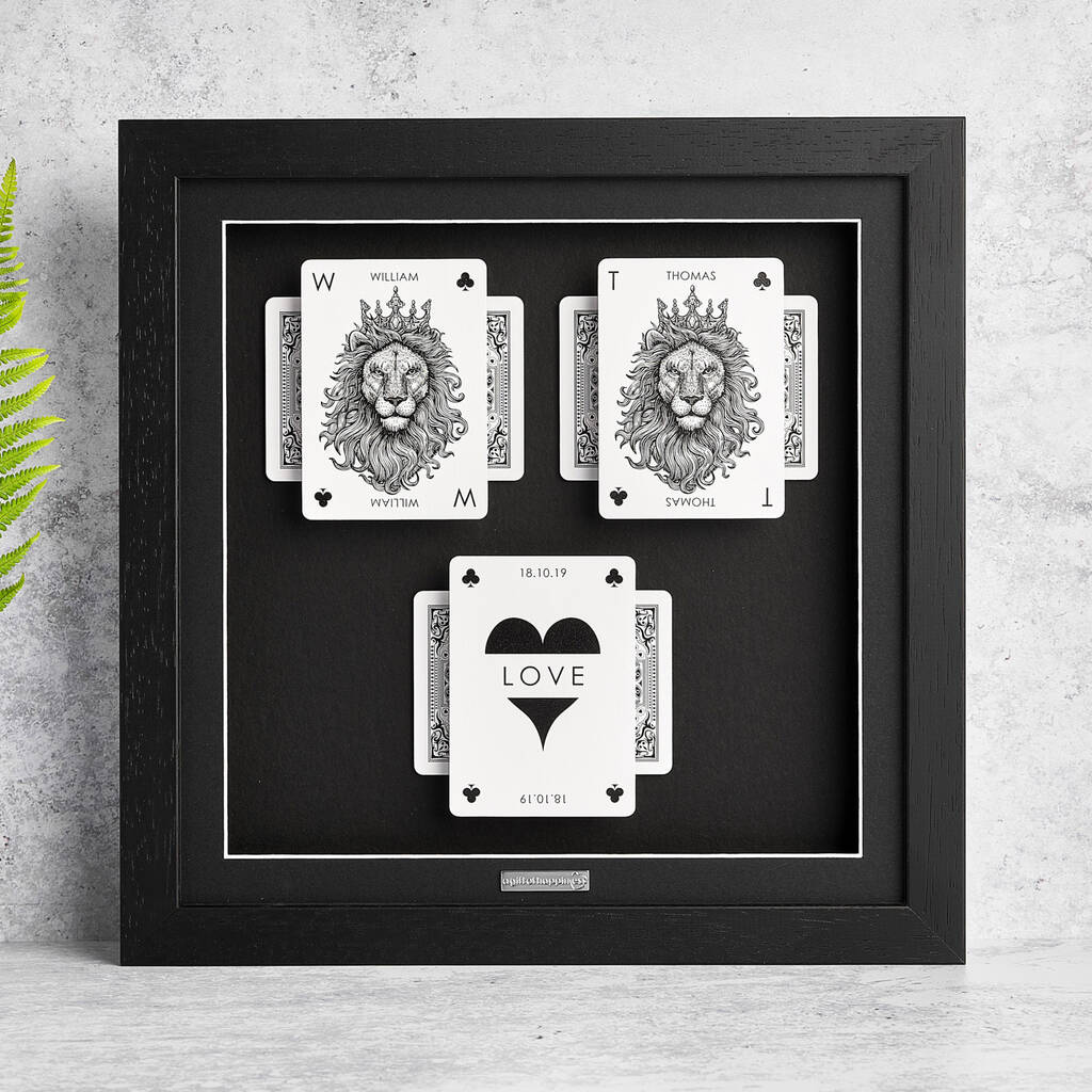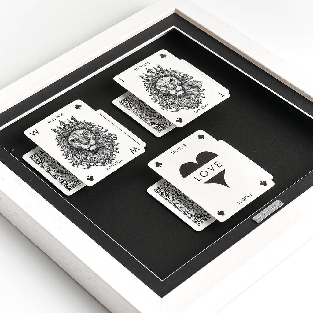 Every Royal Lion Gay Couples Playing Card Frame is made to order, blending artistry and personalisation into a keepsake that feels truly one of a kind