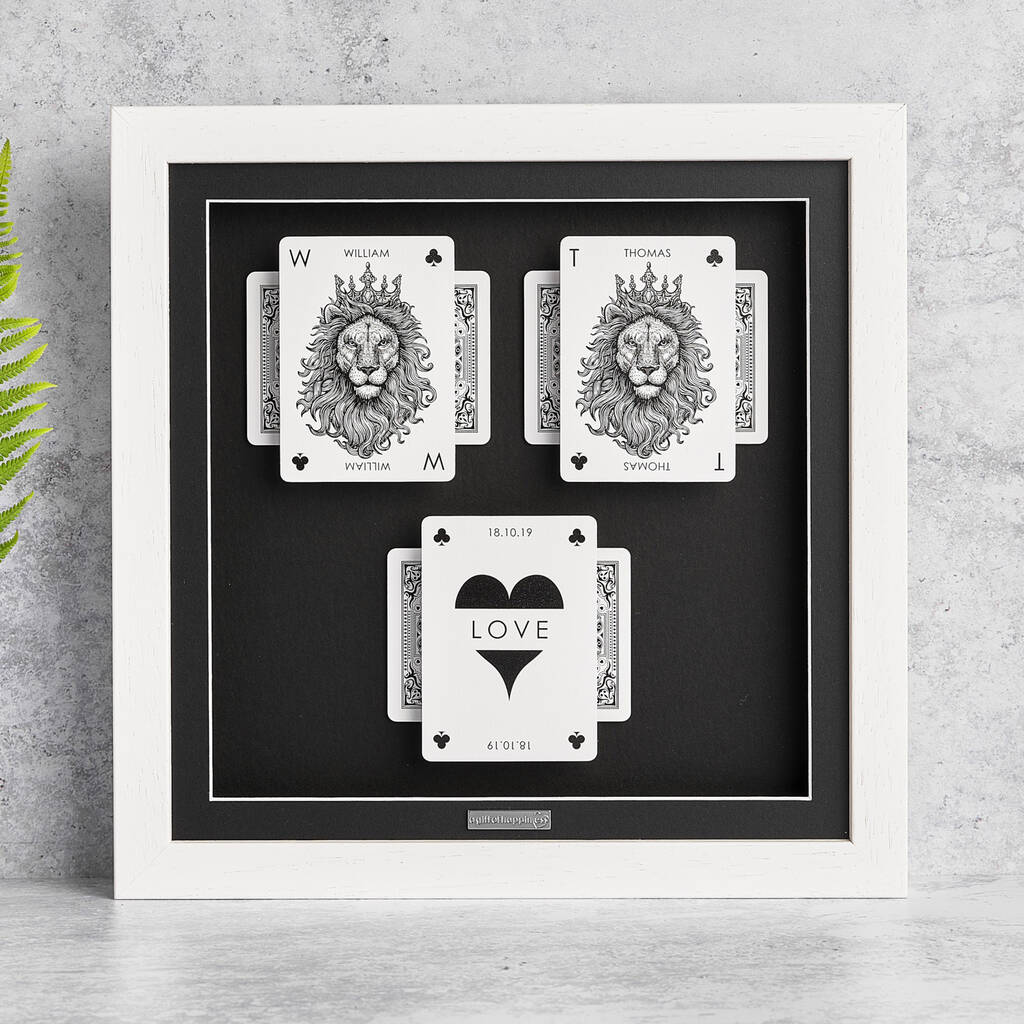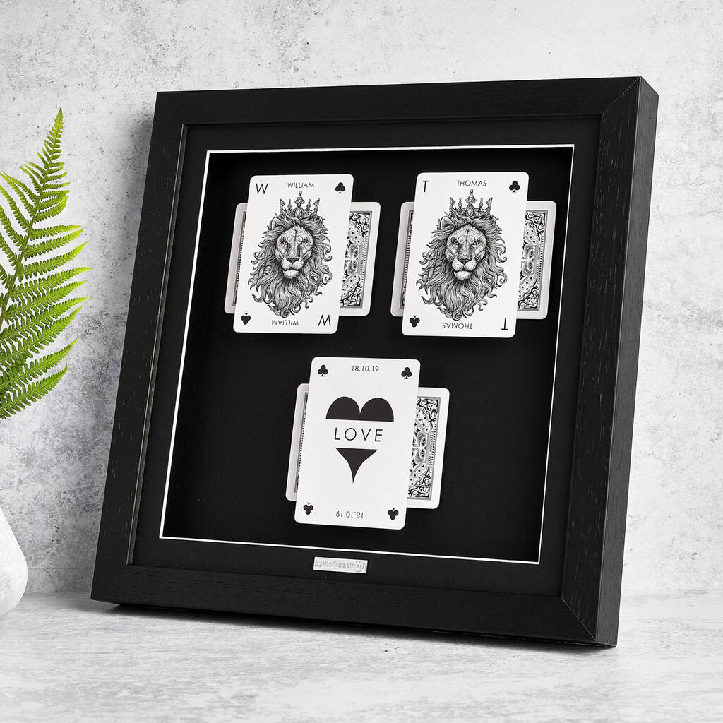 Personalised Gay Couples Gift Royal Lion Playing Cards Frame