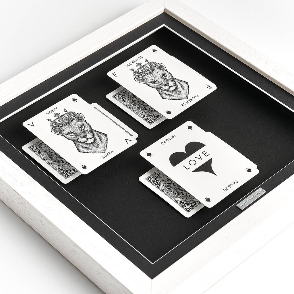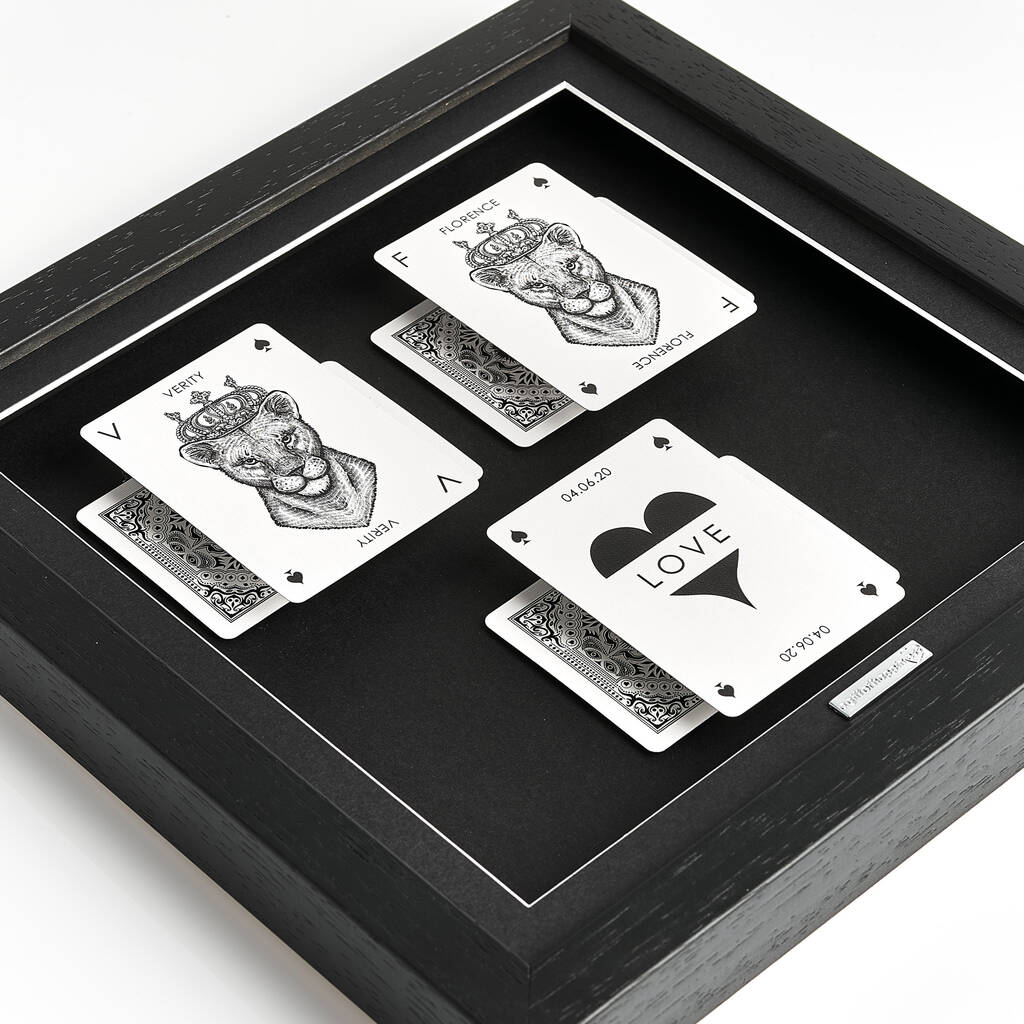 Every Royal Lioness Couples Playing Card Frame is made to order, blending artistry and personalisation into a keepsake that feels truly one of a kind.