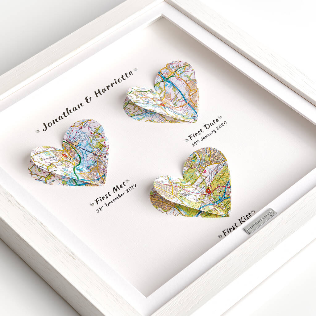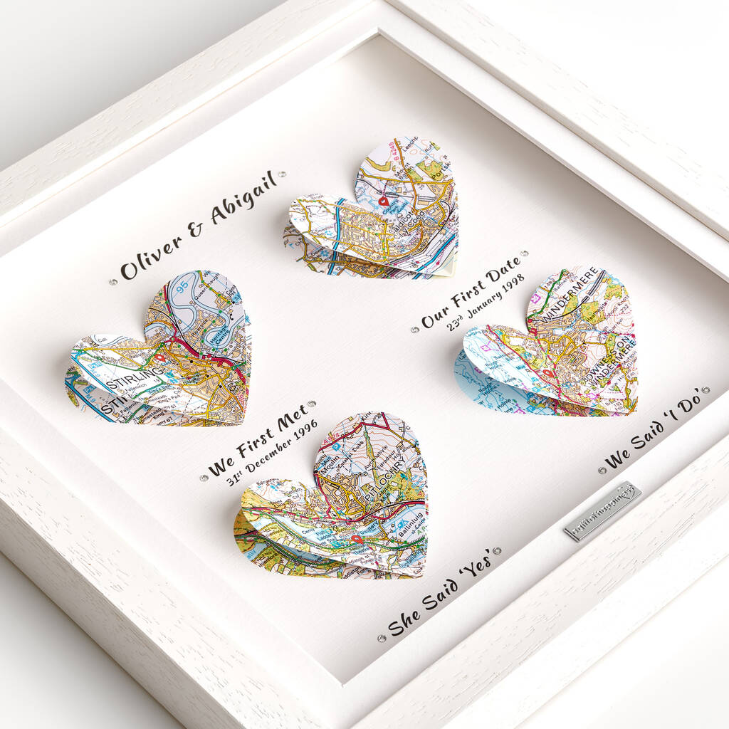 Personalised Linen Anniversary Gift 3D Heart Map Special Occasions Print