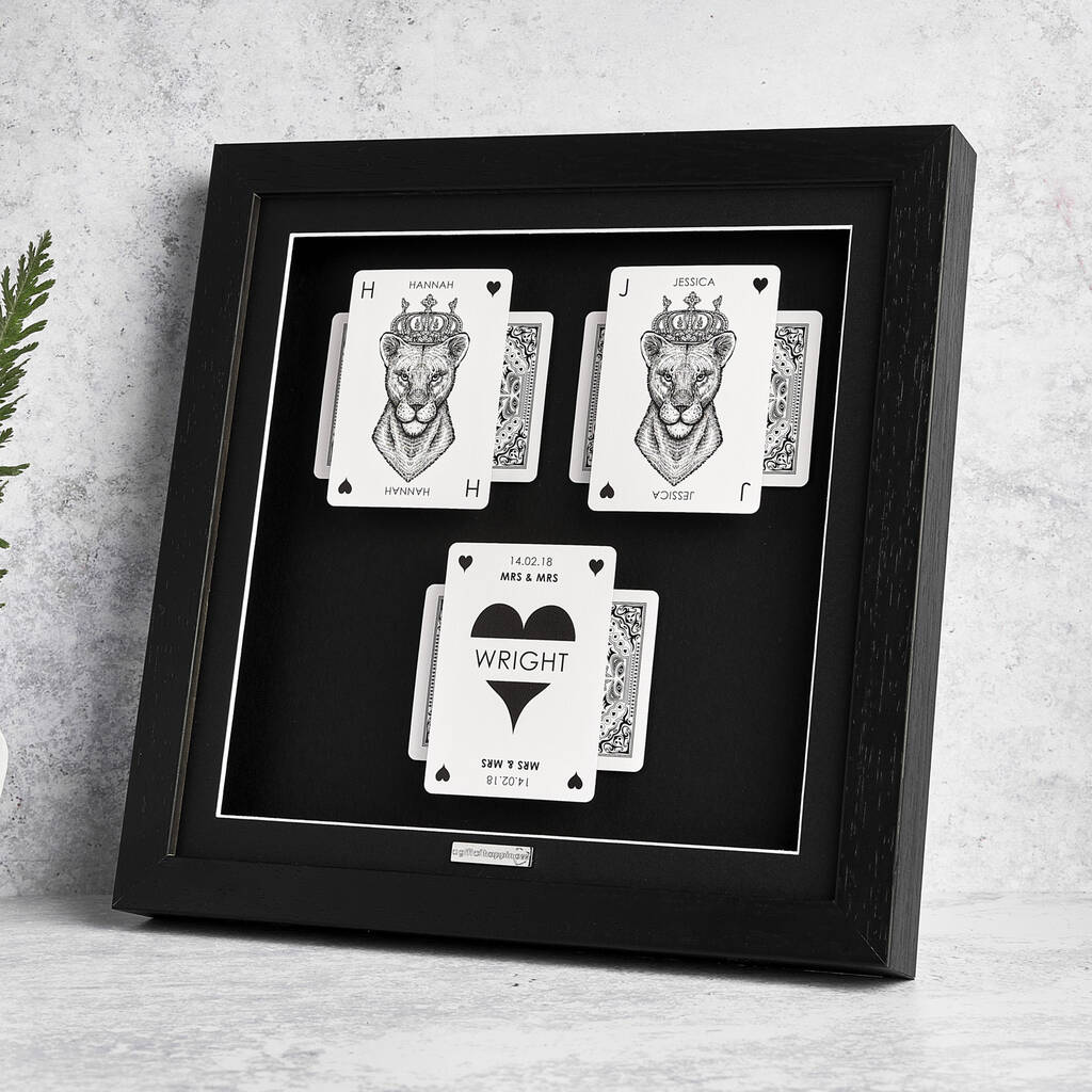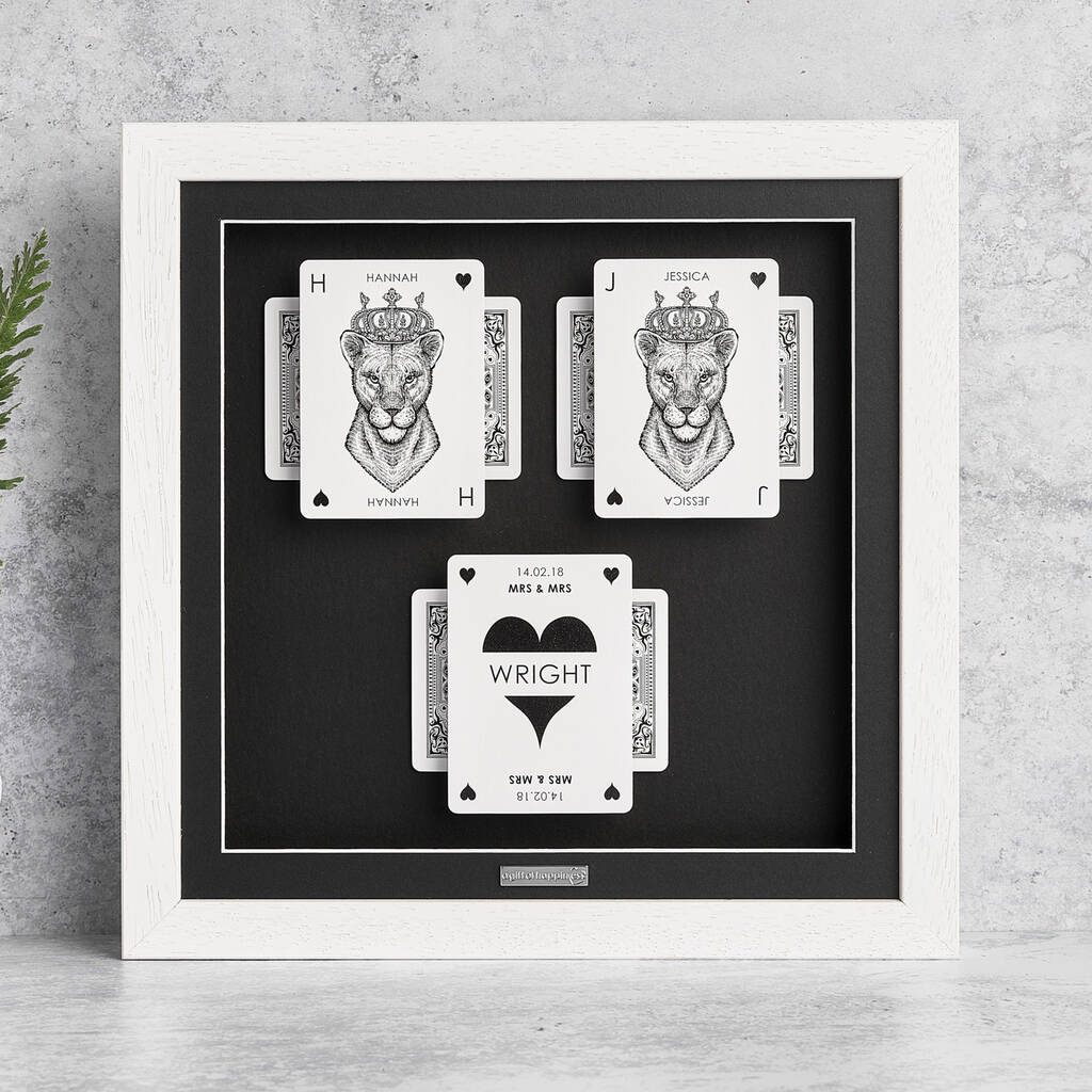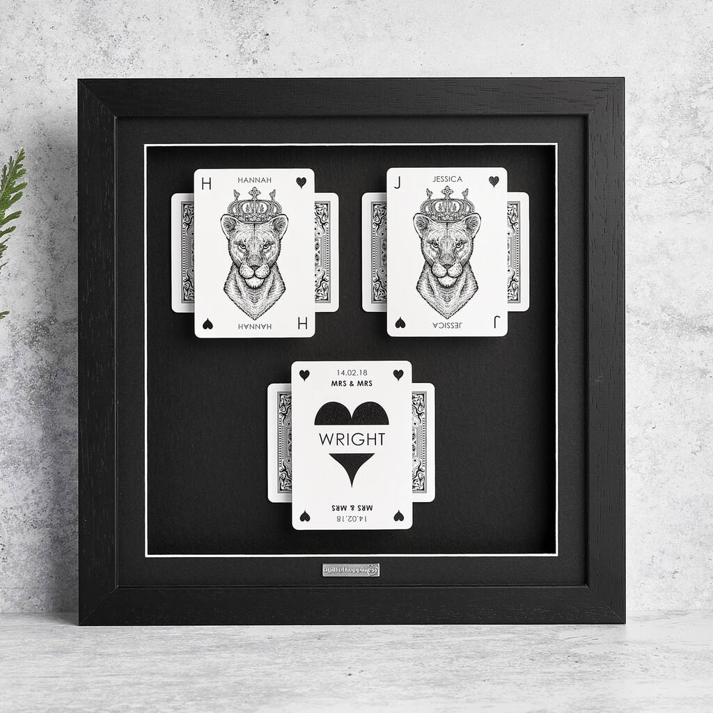 Personalised Mrs And Mrs Wedding Gift Queen Playing Cards Frame