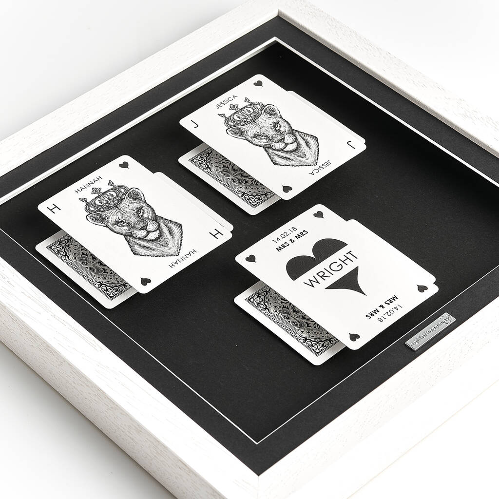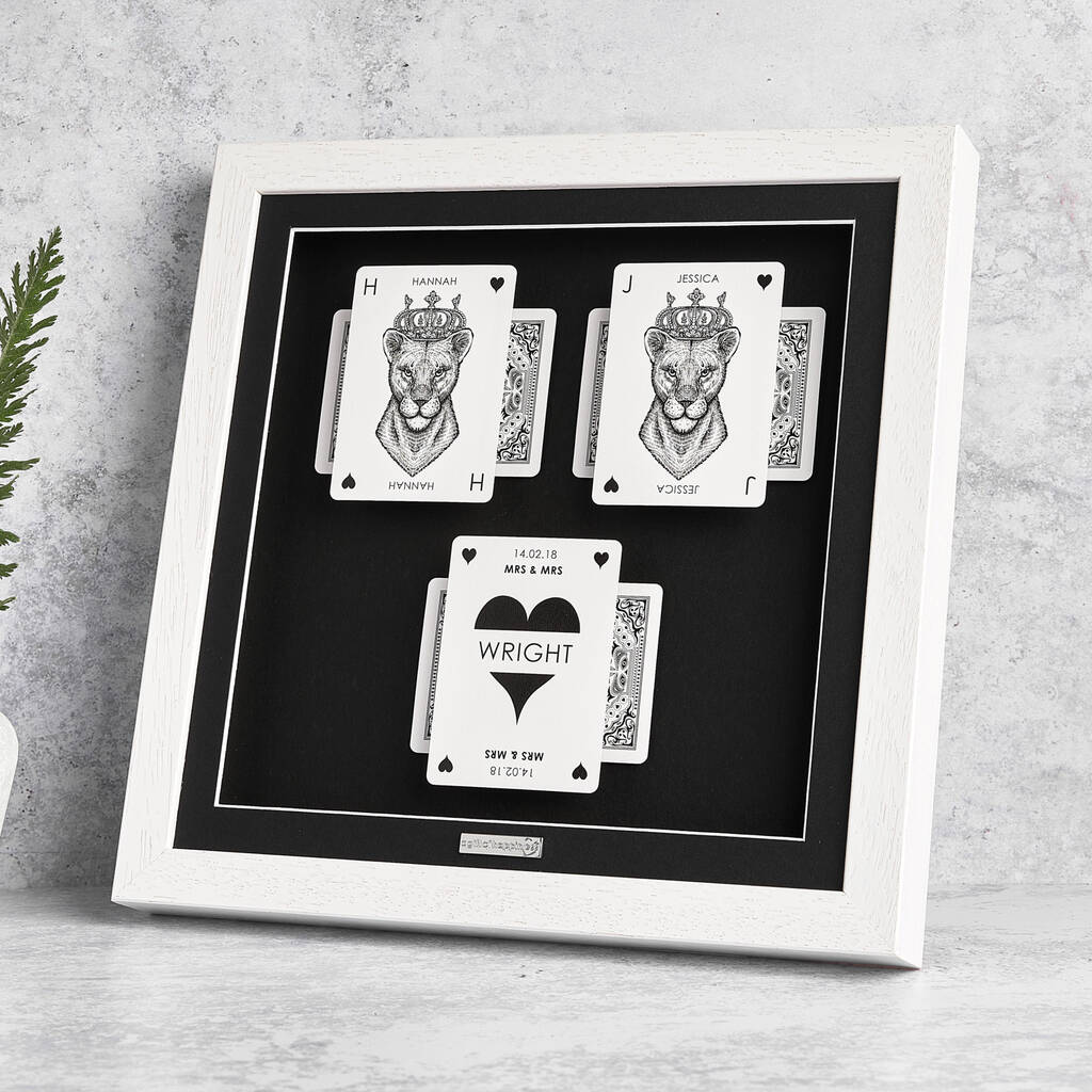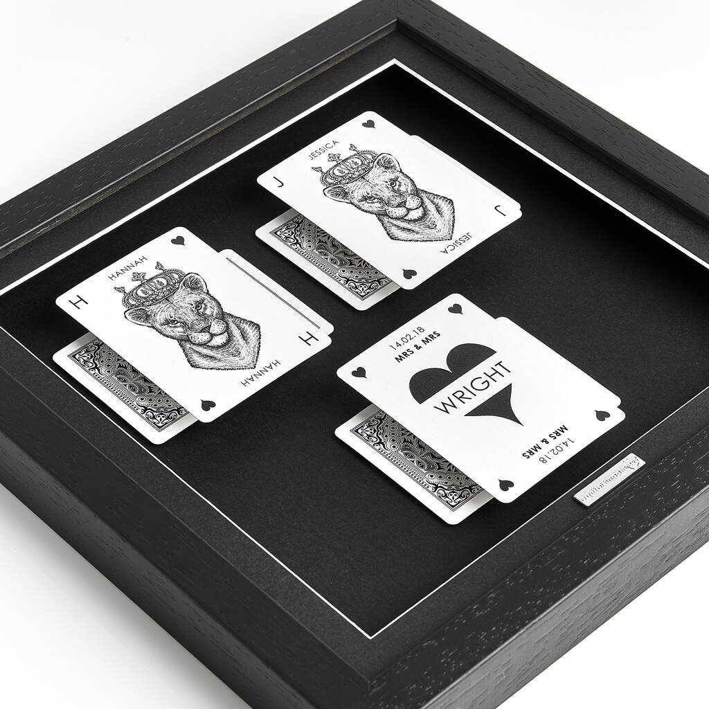 Personalised Mrs And Mrs Wedding Gift Queen Playing Cards Frame