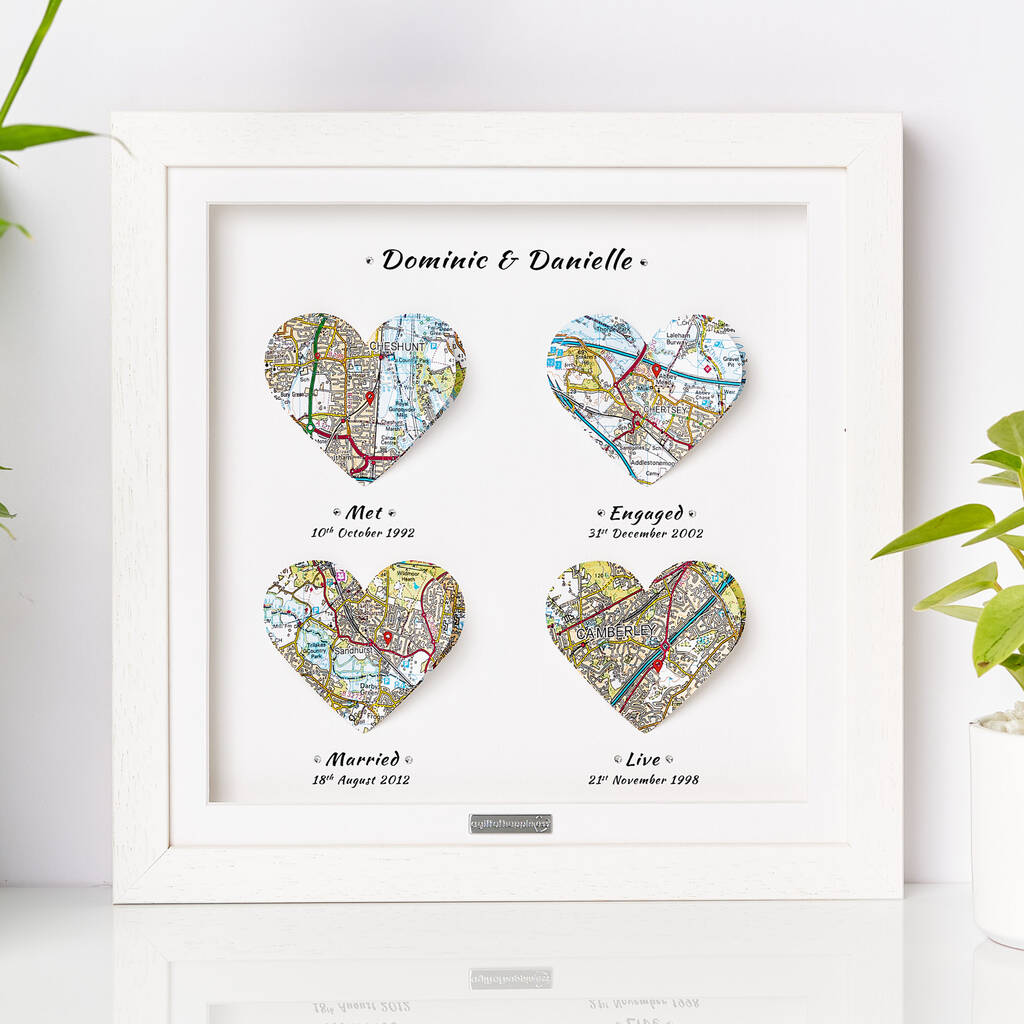 •• 3D LAYERED DESIGN •• Each heart-shaped map is carefully cut and layered with a second identical piece to create depth and texture, producing a distinctive three-dimensional finish. A protective UV coating is applied to preserve clarity and colour, giving you a design built to last.