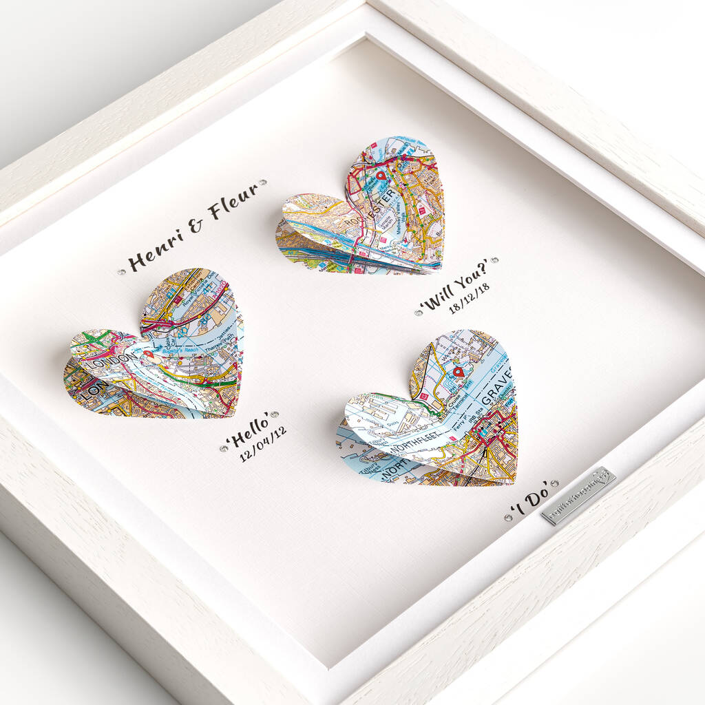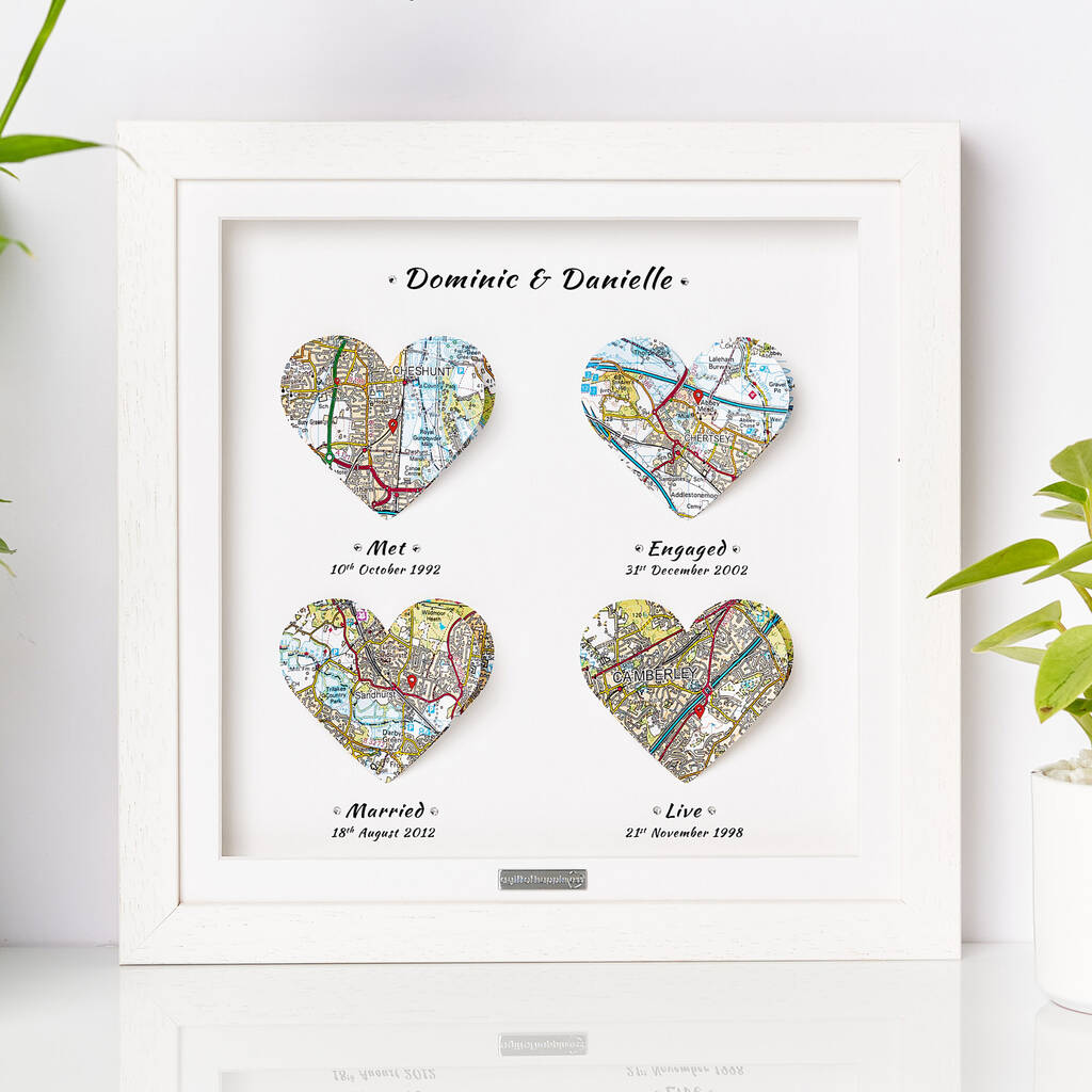 • Each map is carefully cut and layered with a second identical piece to create at 3D effect, producing a distinctive three-dimensional finish.