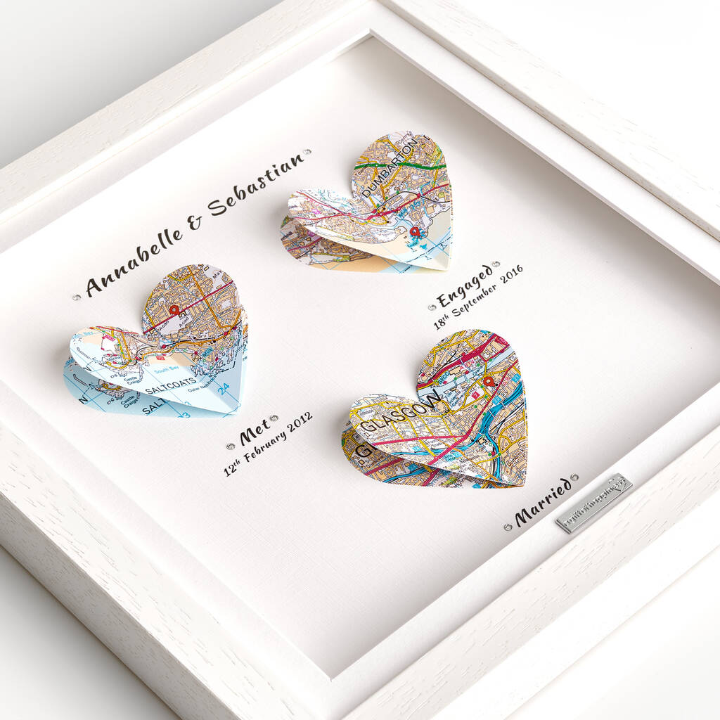 • Each map is carefully cut and layered with a second identical piece to create at 3D effect, producing a distinctive three-dimensional finish.