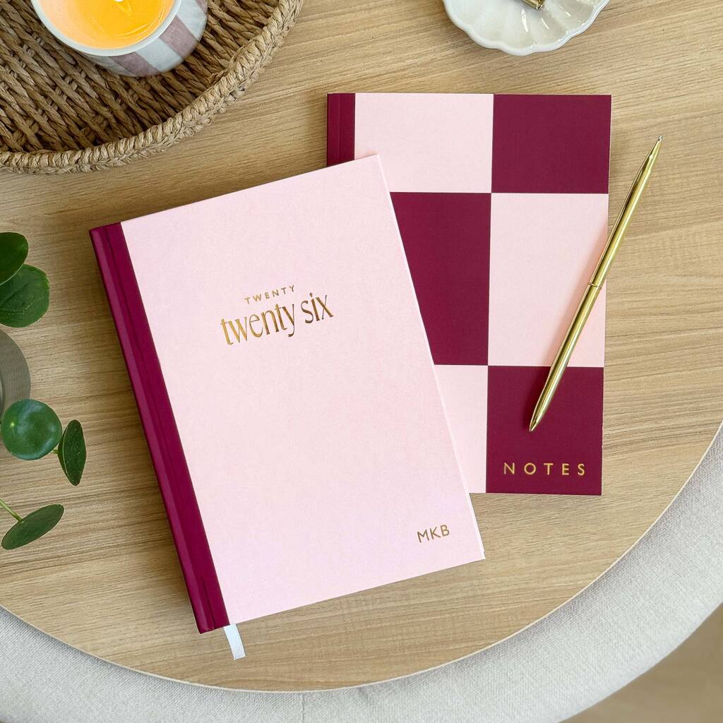 Featuring a pink personalised 2026 planner, notebook and pen, this stationery gift set contains all your planning essentials for the year ahead.