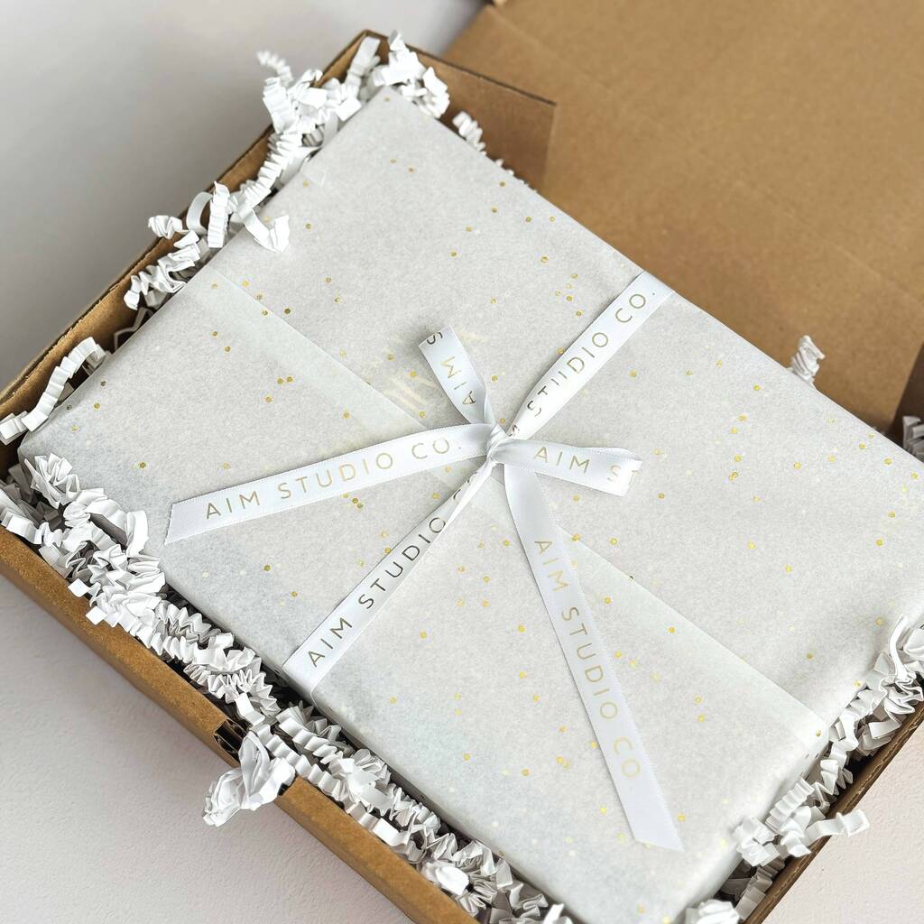 Arrives gift wrapped in tissue paper, finished with a ribbon