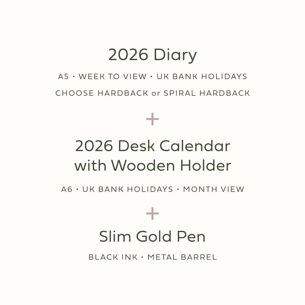 Perfect for a desk refresh, this stationery gift bundle includes a 2026 personalised diary, calendar & pen.
