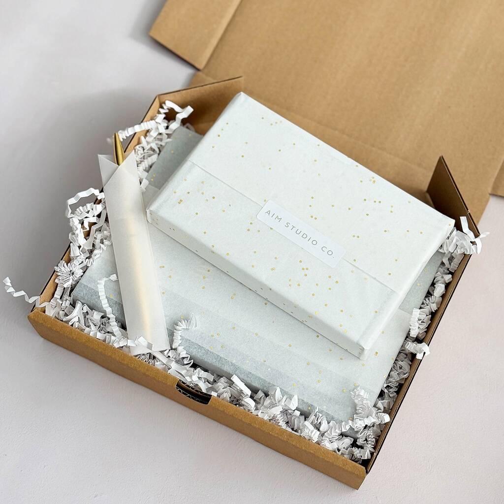 Personalisation: All our Chrismtas gift sets include FREE gold foiled personaliation on the diary cover - simply add your initials or custom name in the box above. Each hardback planner cover is deep embossed using indvidual metal letters. Stamped in-house from our Northamptonshire based studio.
