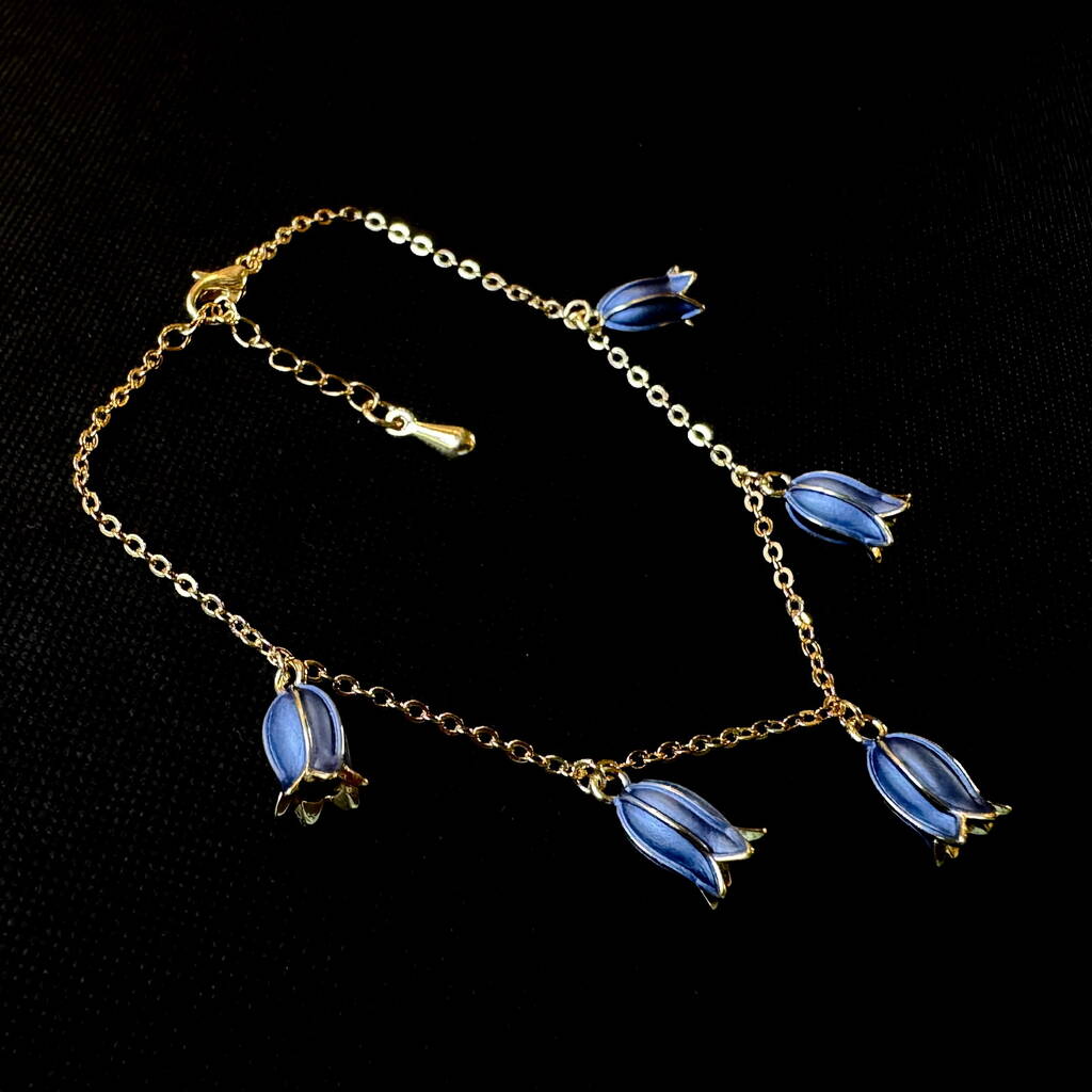 Bluebell Flower Charm Bracelet, 14k Gold Plated