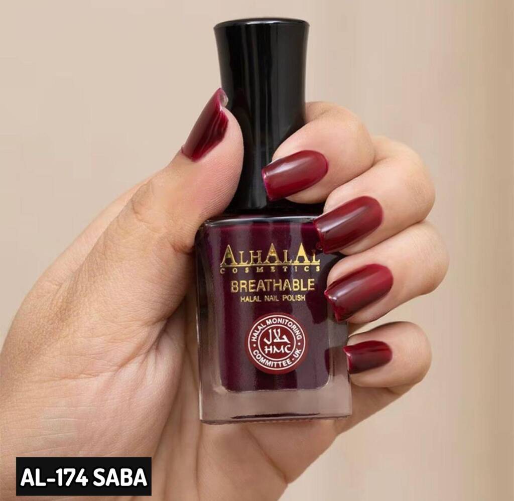 About this item : Our new peel-off nail polish lasts up to 2 days and can be removed in just one easy peel without damaging your nails, Say goodbye to messy soaking, hours of scrubbing, and expensive salon visits Our AL-174 SABA WATER PERMEABLE NAIL POLISH is Water based formulation free of harmful chemicals including formaldehyde, Toluene DBP ,formaldehyde Resin. Camphor , Xylene and Ethyl Toluamide. Our nail polish is not tested on animals! CRUELTY-FREE & VEGAN -- All ALHALAL Cosmetics products are 100% vegan and cruelty-free. We do not believe in testing our products or ingredients on animals. High-impact colour, ultra-shiny finish HALAL AND WUDHU/ABLUTION FRIENDLY -- This product does not contain any animal derivatives or prohibited alcohols. Our nail polishes have been tested and certified as halal and Wudhu friendly. 11-FREE FORMULA -- This nail polish does not contain: formaldehyde, formaldehyde resin, toluene, camphor, DBP, xylene, parabens or many other harsh chemicals. Our products are formulated without the top 11 harshest chemicals found in a typical nail polish BREATHABLE -- formula allows water to permeate through the nail polish, keeping nails healthy and hydrated. Quick drying - Ready to go in under 60 seconds Certified by HALAL monitoring committee united kingdom, Curtly free,light weight formula, Smooth free , Rich Color, Free From Nasty Colors, Clinically Approved Contain Neither Alcohol or Aerosol Makeup Benefits: High Pigmentation, Matte Finish. Halal Ingredients Used: Water, polyurethane-1, sodium dodecylbenzenesulfonate, acrylic acid (ester)/ VA copolymer, slachonium bentonite, calcium gluconate, phenoxyethanol, CI 15850,CI 15880. Al Halal Cosmetics are made of according to Islamic principles and are considered halal, or permissible, for use by Muslims. These cosmetics do not contain any ingredients that are prohibited in Islam, such as alcohol or animal-derived substances, and are produced in accordance with Islamic laws and regulations. 1. They Can Provide The Same High-Quality Performance, Color And Finish As Non-Halal water permeable nail polish. 2. Using Halal Products Can Also Be A Way To Support The Halal Industry And Companies That Align With One'S Personal Values 3. They Are Free Of Ingredients That Are Considered Haram (Forbidden) In Islam Such As Pork Or Alcohol Derivatives. 4. They Do Not Include Animal-Derived Ingredients Or By-Products, Making Them Suitable For Vegans And Vegetarians. 5. They Are Cruelty-Free, Meaning That No Animal Testing Is Performed On The Final Product Or Any Of Its Ingredients. SPECIAL FEATURE : The Halal Certification Process Also Ensures That The Manufacturing Process And The Facility Meet Certain Standards Of Hygiene, Safety And Environmental Protection.