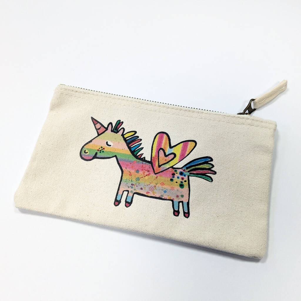 A really cute zipped case with a unicorn illustration - perfect for organising pencils.