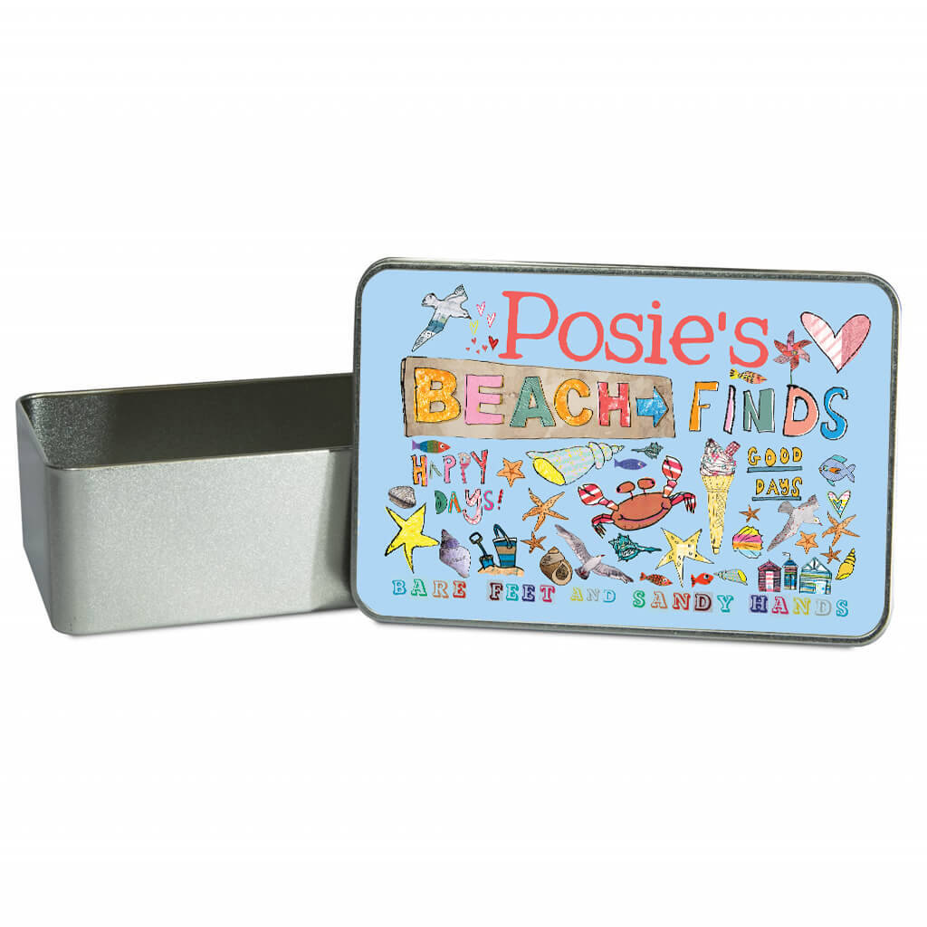 A personalised metal tin - perfect to fill with shells and sea glass found on the beach.