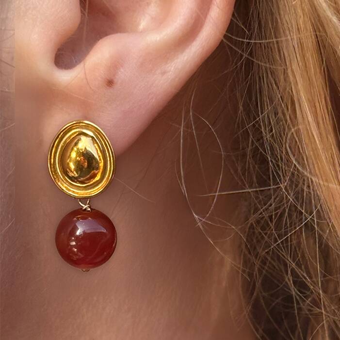 Fisher Round Carnelian Bead Drop Stud Earrings