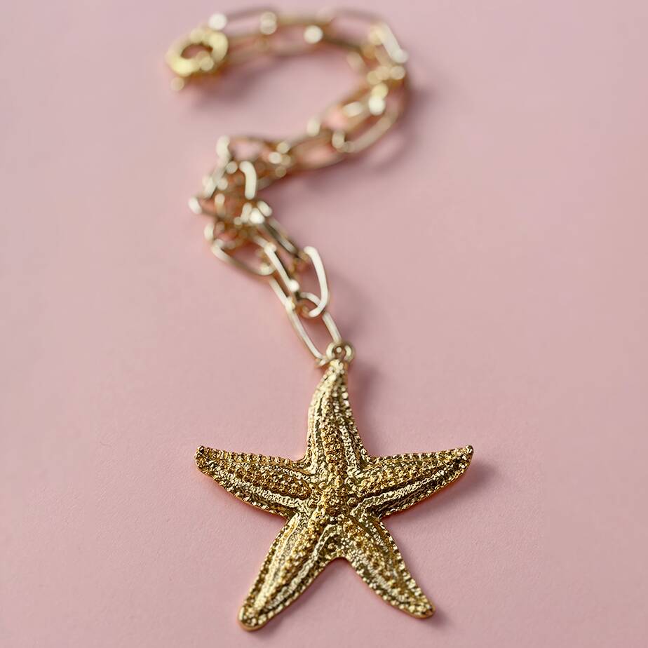 Oversized Starfish Chunky Charm And Chain Necklace