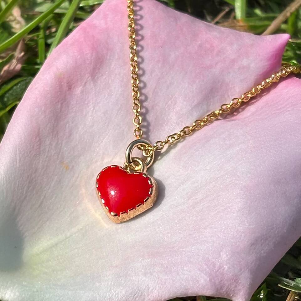 Sweet Heart Teeny Enamel Charm Delicate Chain Necklace