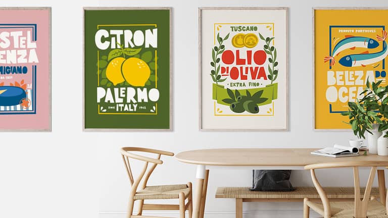 Based in rural England, Almanac are a couple with a passion for typography, graphic design and vintage style. Through a love of music and food their designs merge colourful retro themes with a modern quirky twist. They have an borderline obsession with Scandinavian style and Mid-Century architecture. This graphic style is evident throughout their bright and colourful designs. 'We don't like to take ourselves to seriously, and we like to bring that laid-back feel to all of our wall art'.